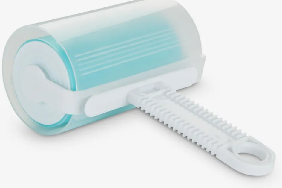Rouleau adhésif réutilisable pour enlever les cheveux et les peluches des vêtements et des meubles. Le rouleau se nettoie facilement en le rinçant à l’eau tiède. Comprend une housse de protection. l17 x L7 x H11 cm
