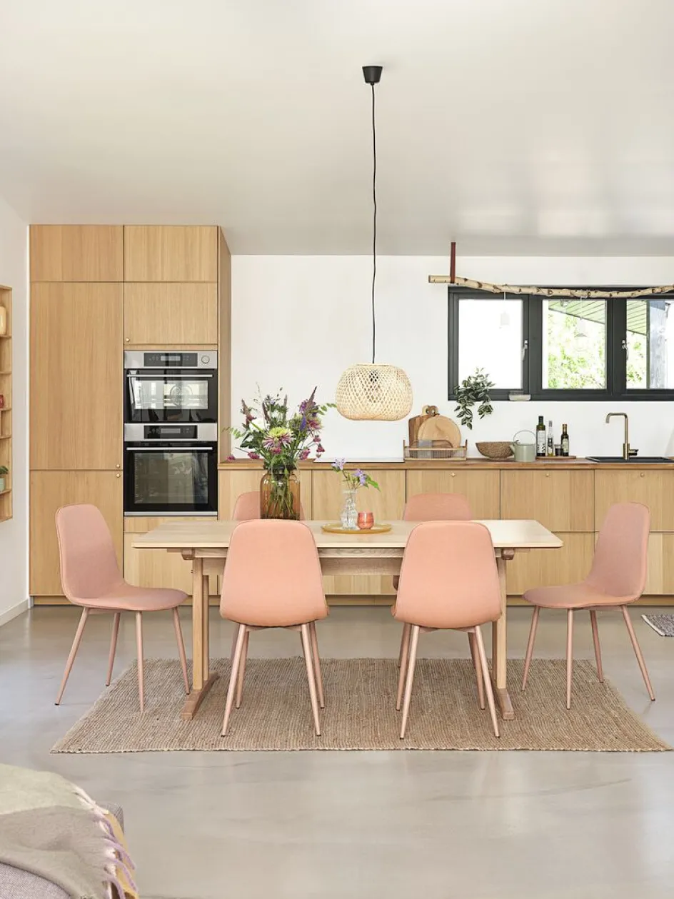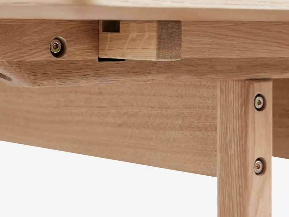 Table de salle à manger avec 2 rallonges. Le plateau de la table est en chêne massif et placage chêne, les pieds sont en chêne massif. Le bois est laqué pour une plus grande durabilité. Vous pouvez facilement allonger la table jusqu’à 225 ou 270 cm pour accueillir plus d’invités. l95 x L180 x H75 cm