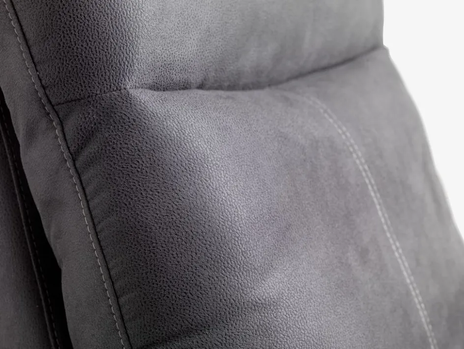 Structure : contreplaqué, HDF, pin/eucalyptus massif, acier. Garnissage : mousse polyuréthane (32 kg/m³), avec ressorts ensachés. Revêtement : polyester. Pieds : polyamide. Mécanisme de basculement électrique et repose-pieds intégré. l75 x H84-102 x P89-154 cm