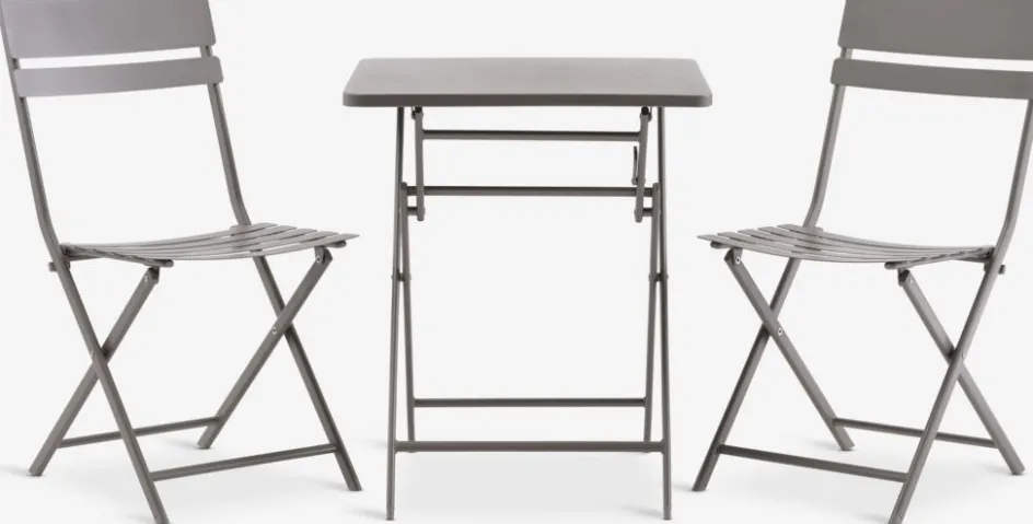 Ensemble bistrot 2 personnes. table : acier. Pliable. l60 x L60 x H71 cm. Chaise : acier. Pliable.