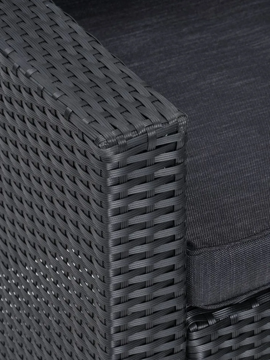 Les coussins d’assise et de dossier haut de gamme inclus vous permettent de vous asseoir et de vous détendre dans un confort optimal. Les coussins sont recouverts d’une housse tissée durable, qui les rend résistants à l’usure. Rangez les coussins à l’intérieur lorsqu’ils ne sont pas utilisés afin de les protéger des intempéries et de prolonger leur durée de vie.