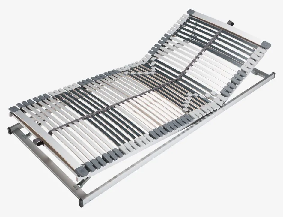 Sommier réglable manuellement 140×190 cm. 41 lattes divisées en 7 zones de confort. 9 lattes double à fermeté ajustable.