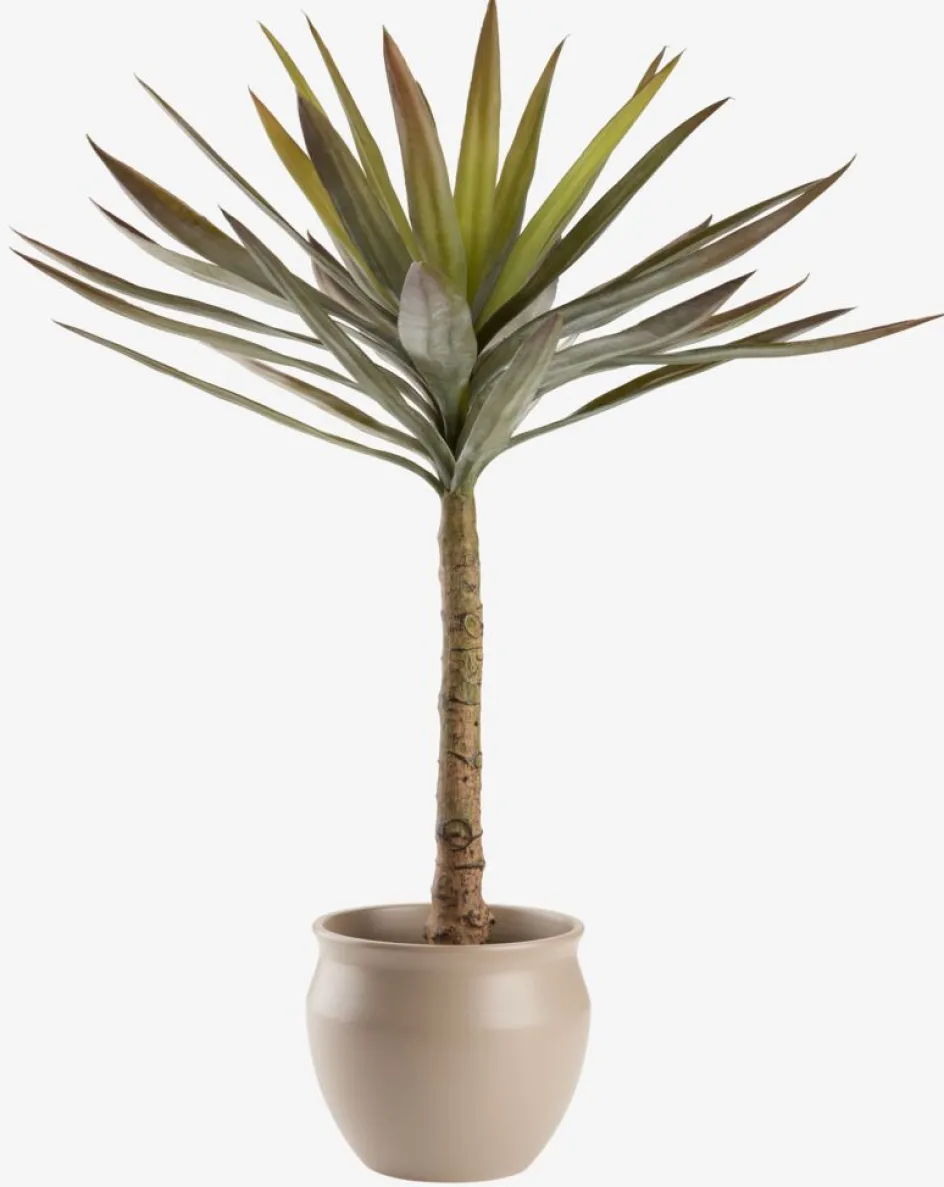 Plante artificielle avec de longues feuilles vertes et une tige haute placée dans un pot noir. La taille de la plante la rend adaptée comme plante de sol, que ce soit à la maison ou au bureau. Ø60 x H75 cm