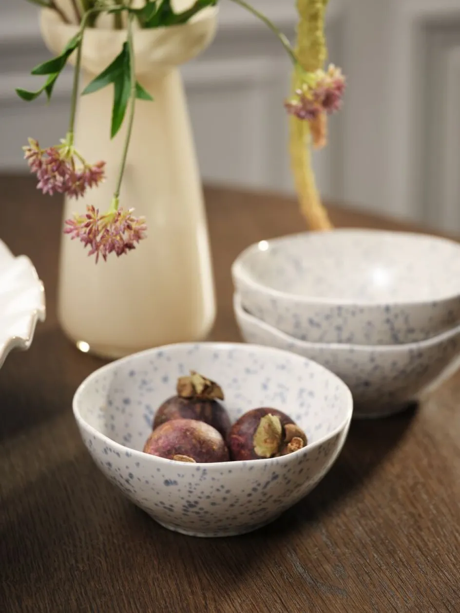 Bol au design singulier moucheté bleu et blanc. Fabriqué en grès, il a la taille idéale pour la soupe, les céréales ou les snacks. Le bol est également résistant au lave-vaisselle. Ø15 x H6 cm