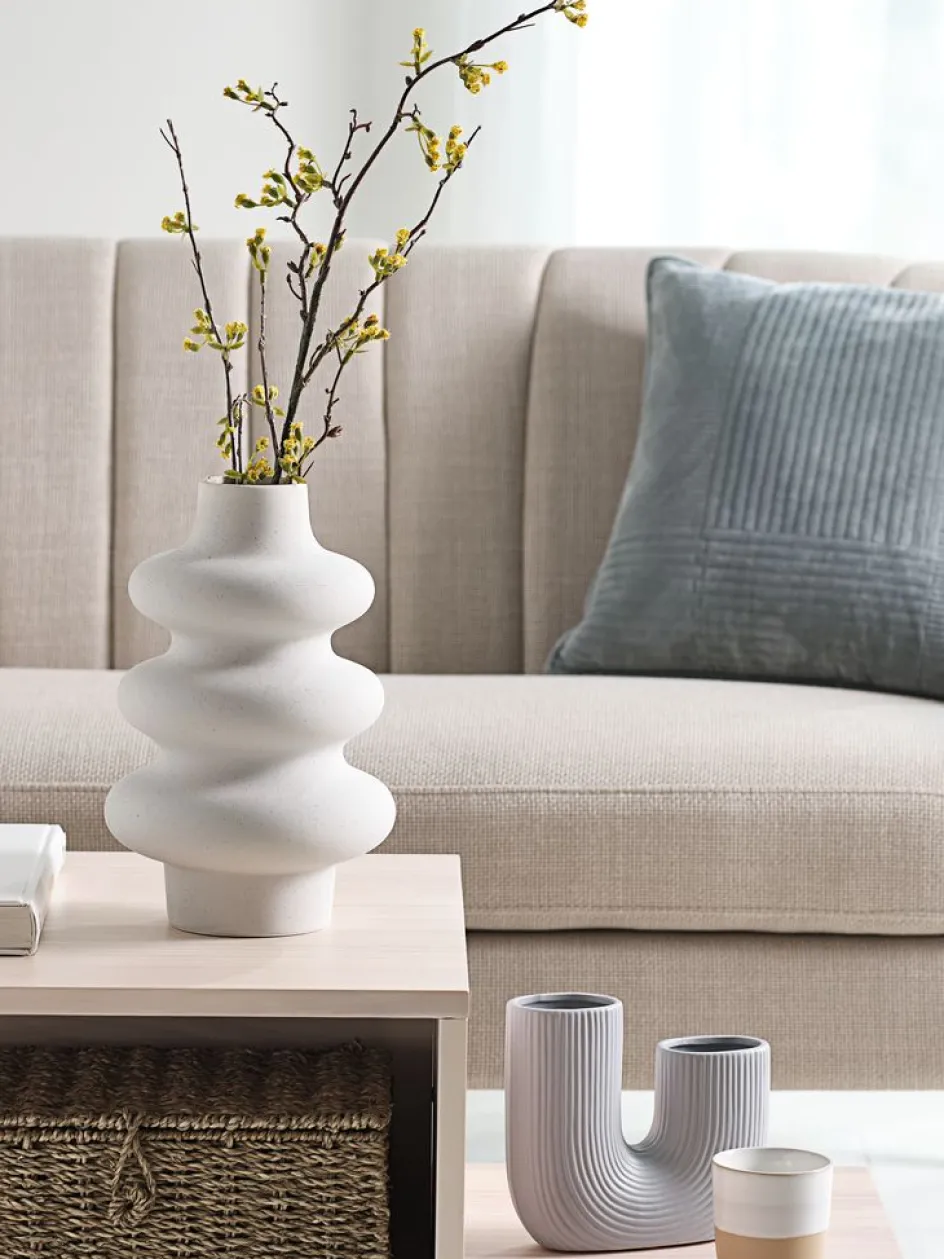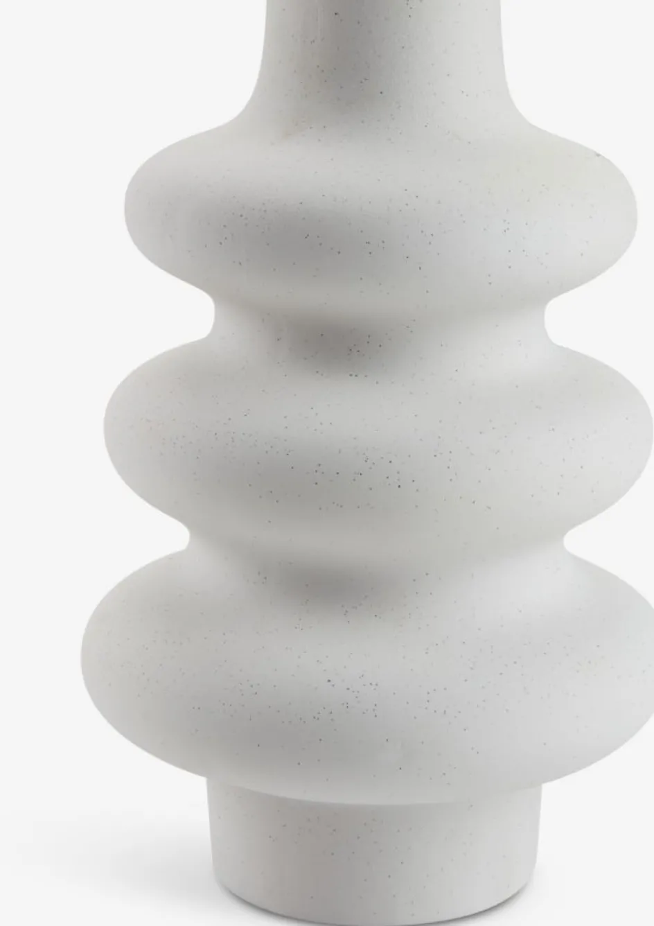 Vase en dolomite blanche à la forme sculpturale et arrondie. Il présente un look moderne et organique, idéal pour mettre en valeur des fleurs ou pour être utilisé comme pièce décorative. Ø20 x H30 cm