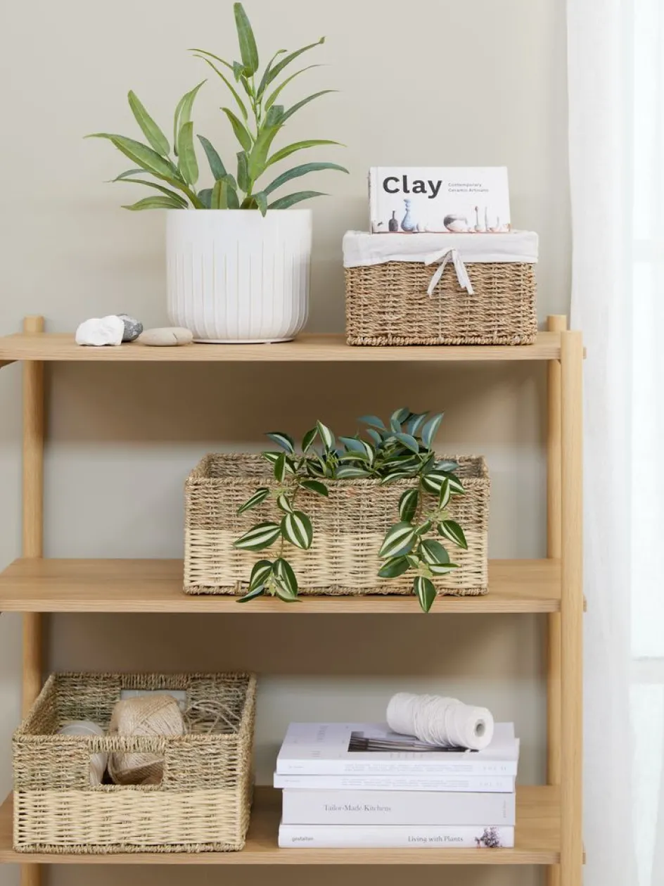 Panier en papier, herbier marin et acier inoxydable. Avec des poignées qui facilitent le déplacement. Une solution de rangement pratique et élégante pour les articles ménagers. l29 x L39 x H15 cm