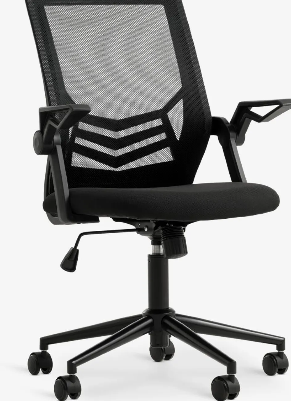 La chaise de bureau ASPERUP est conçue afin que vous puissiez rester concentré tout au long de votre journée de travail. Une chaise de bureau est une chaise pratique et confortable, idéale pour le travail occasionnel au bureau ou les moments d’étude. Dotée d’accoudoirs rabattables pratiques, cette chaise vous permet de choisir entre un soutien ou plus d’espace afin que vous puissiez rester assis confortablement plus longtemps. La chaise est recouverte d’un tissu noir doux et d’une maille respirante. l59 x H95-107 x P61 cm
