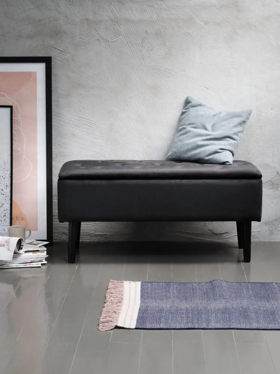 Tissu velours et bois massif. Avec espace de rangement. l95 x H45 x P37 cm