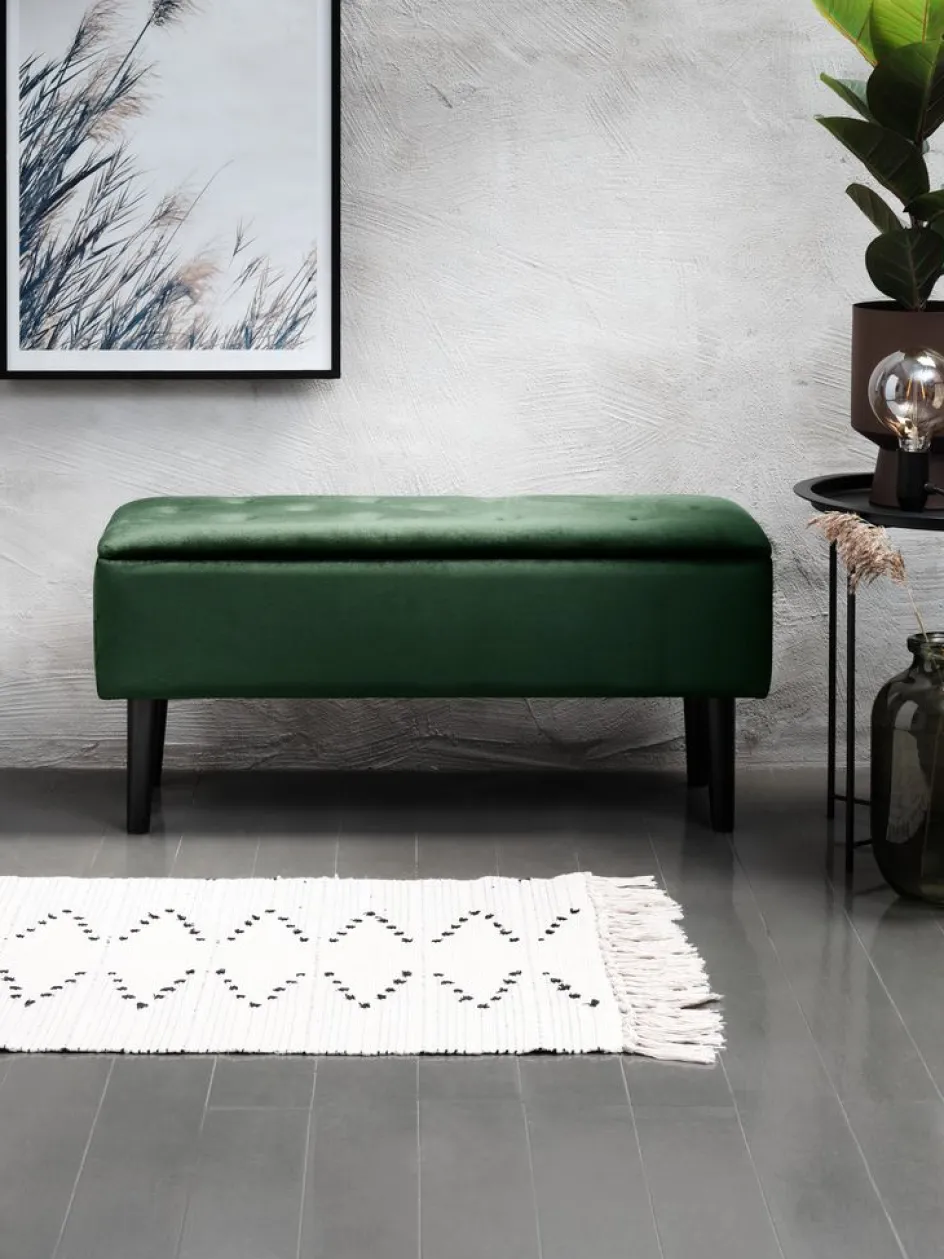 Tissu velours et bois massif. Avec espace de rangement. l95 x H45 x P37 cm