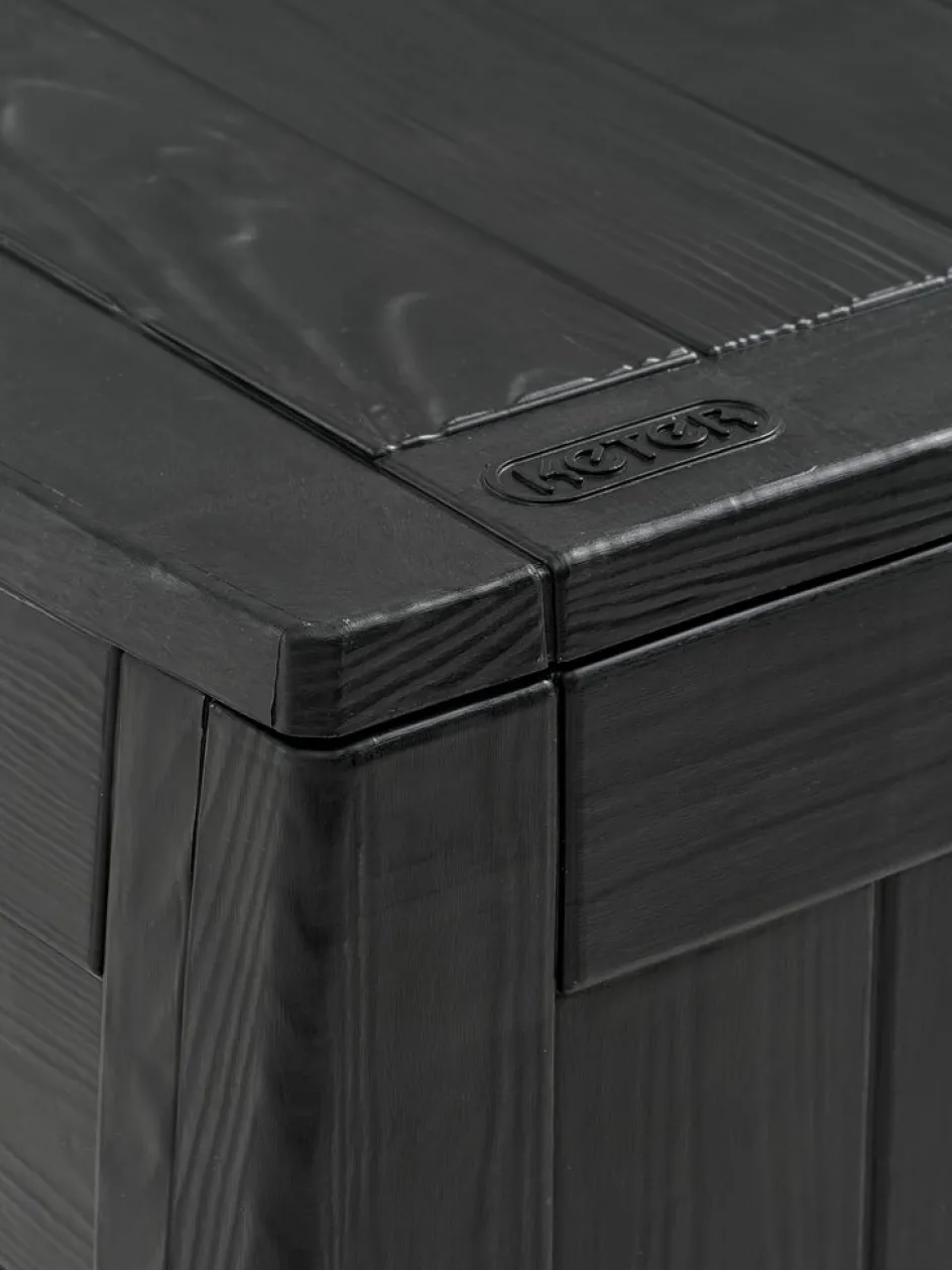 Coffre à coussins en plastique étanche résistant aux UV (30% recyclé). Avec poignée de tirage. Résiste au gel. l117 x H58 x P45 cm