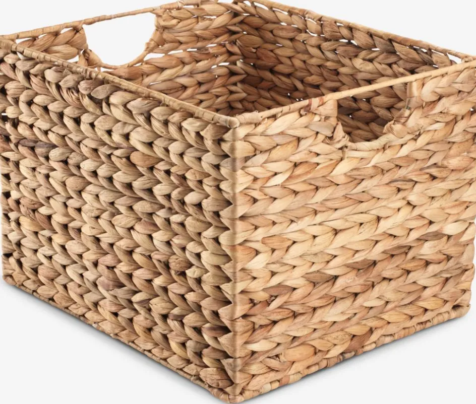 Panier fabriqué en jacinthe d’eau avec un cadre en acier. Sa couleur naturelle et sa texture tissée ajoutent un charme naturel à la maison. Idéal pour ranger des articles comme des jouets, des livres ou des articles de toilette. l30 x L35 x H25 cm