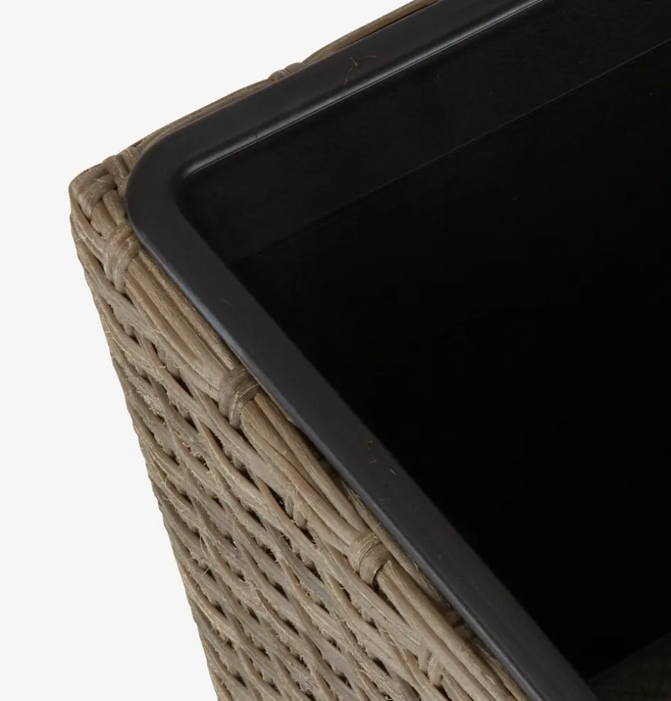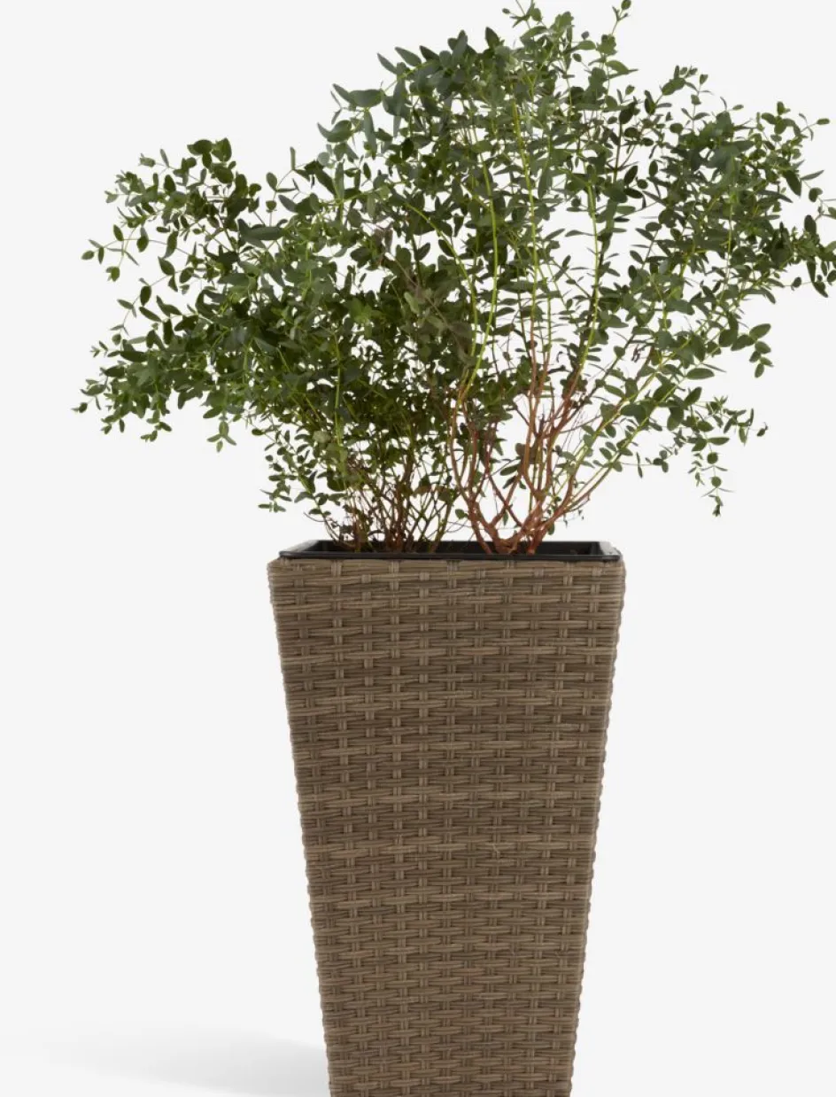 Panier pour plantes en polyrotin et acier peint par poudrage. Ce panier pour plantes léger et résistant au gel est idéal pour exposer tous types de plantes dans les espaces extérieurs. Un trou de drainage peut être facilement créé pour s’assurer que l’excès d’eau puisse s’écouler. l31 x L31 x H50 cm