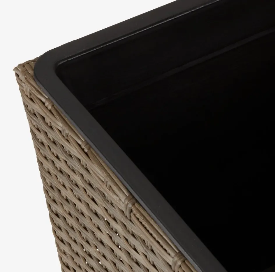 Panier pour plantes en polyrotin et acier peint par poudrage. Ce panier pour plantes, léger et résistant au gel, est idéal pour exposer tous types de plantes dans les espaces extérieurs. Un trou de drainage peut être facilement créé pour permettre l’évacuation de l’eau en excès. l36 x L36 x H70 cm