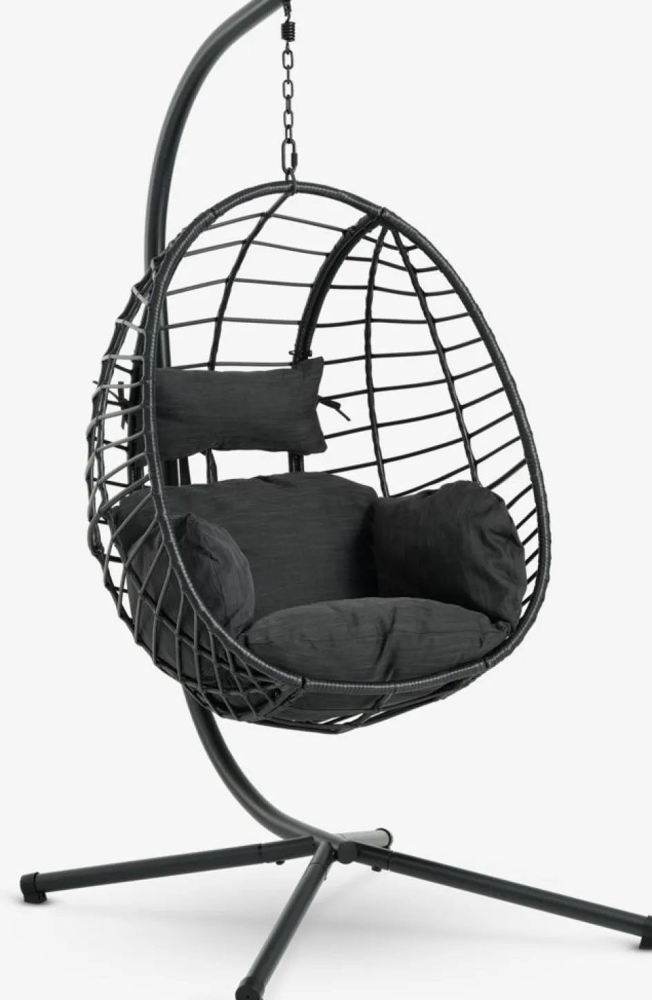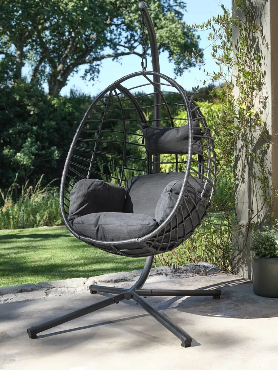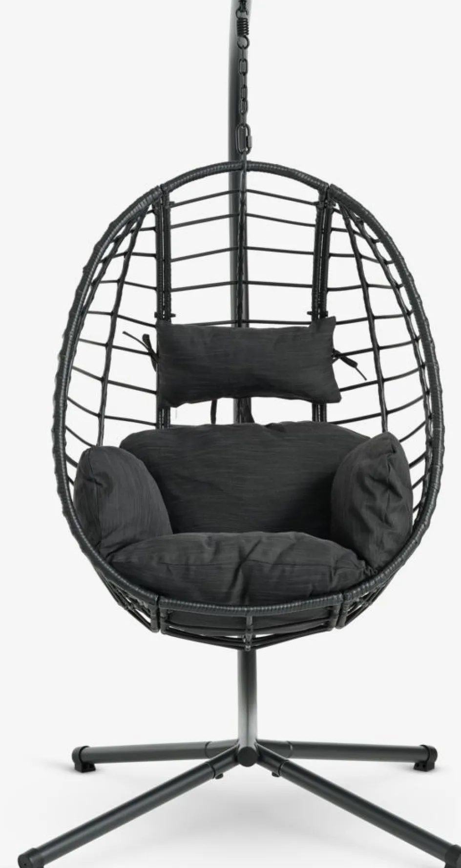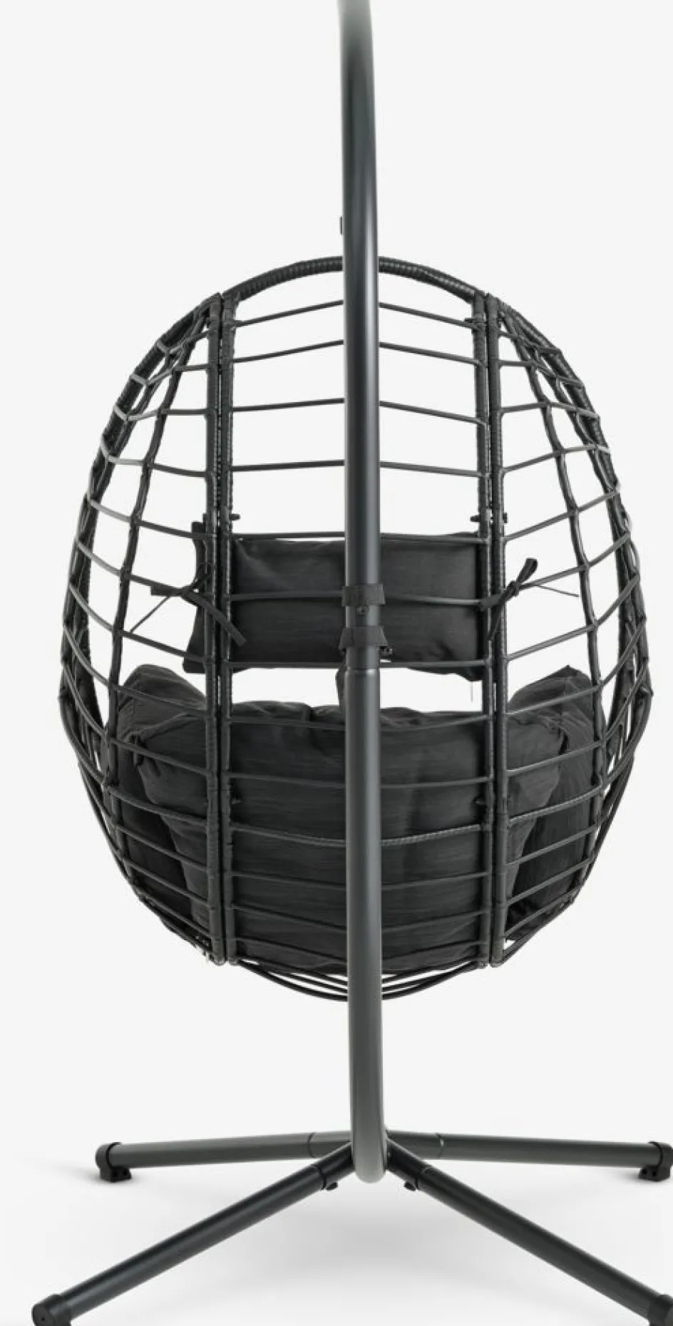 Chaise suspendue en acier et polyrotin. Incl. cadre et coussins haut de gamme avec housse résistante tissée. l96 x H192 x P124 cm