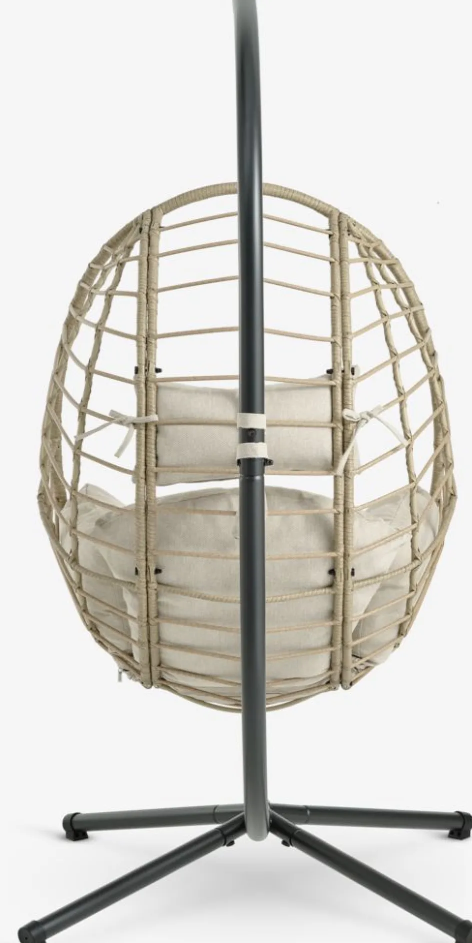 Chaise suspendue en acier et polyrotin. Incl. cadre et coussins haut de gamme avec housse résistante tissée. l96 x H192 x P124 cm