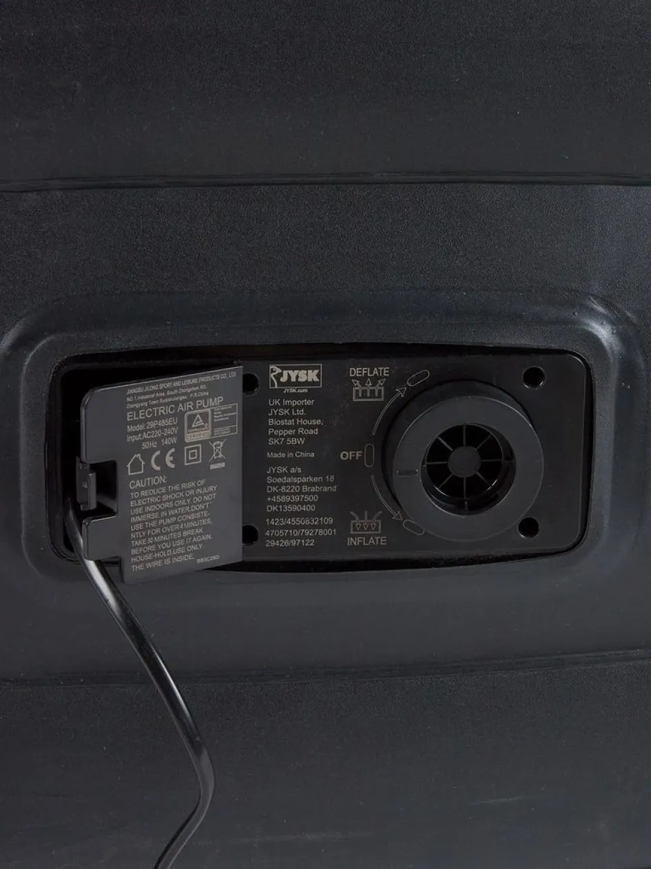 Matelas gonflable en PVC avec partie supérieure en velours doux. Avec oreiller et pompe électrique intégrés. Incl. sac de rangement. l94 x L198 x H46 cm