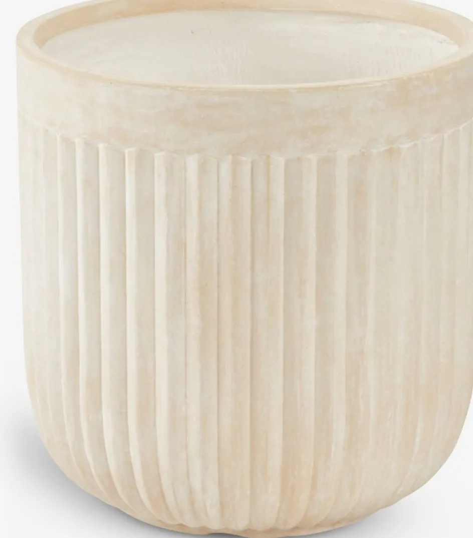 Bac à fleurs en fibre d’argile résistant au gel avec une finition naturelle de couleur clair. Le trou de drainage permet à l’excès d’eau de s’écouler. Ø37 x H37 cm