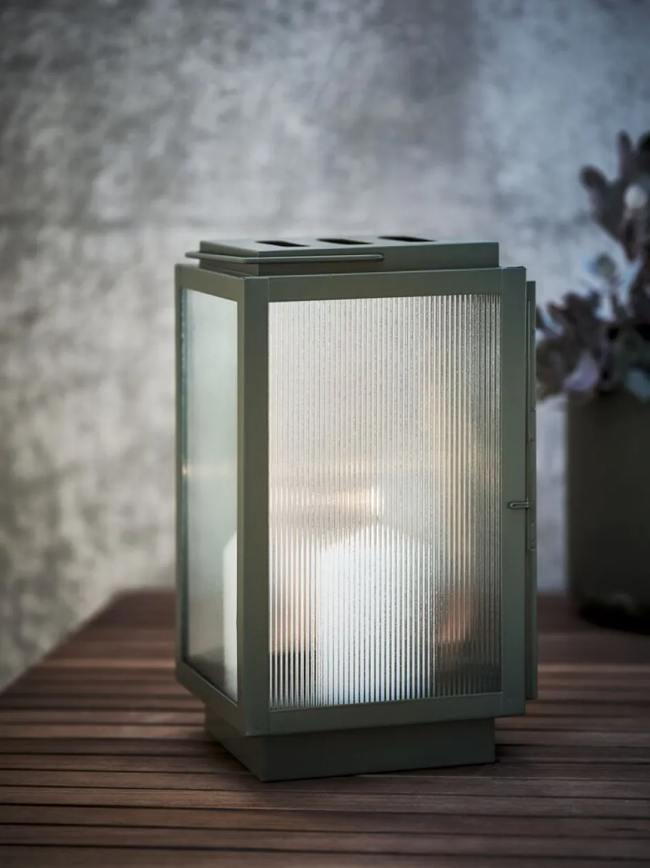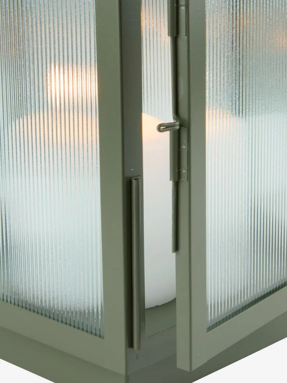 Lanterne coloris vert olive en acier galvanisé et verre dépoli. Parfaite pour ajouter une lumière chaude et d’ambiance à vos espaces extérieurs. Vous pouvez ouvrir la lanterne sur le côté pour placer une bougie pilier à l’intérieur, et la poignée permet de transporter et de placer la lanterne où bon vous semble. l15 x L16 x H28 cm