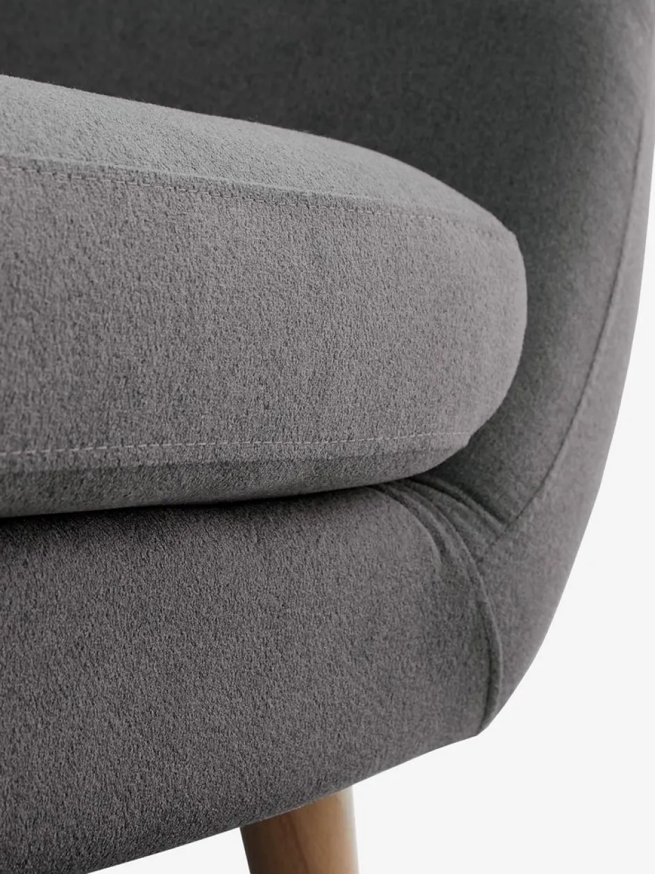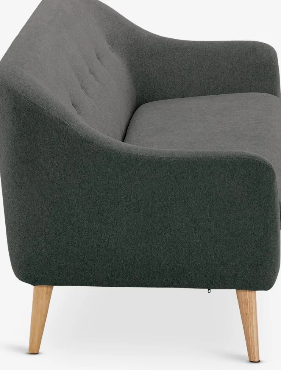 En contreplaqué, eucalyptus massif. Revêtement : polyester. Garnissage : mousse polyéther. Pieds : bois de caoutchouc massif. 2,5 places. l170 x H82 x P81 cm