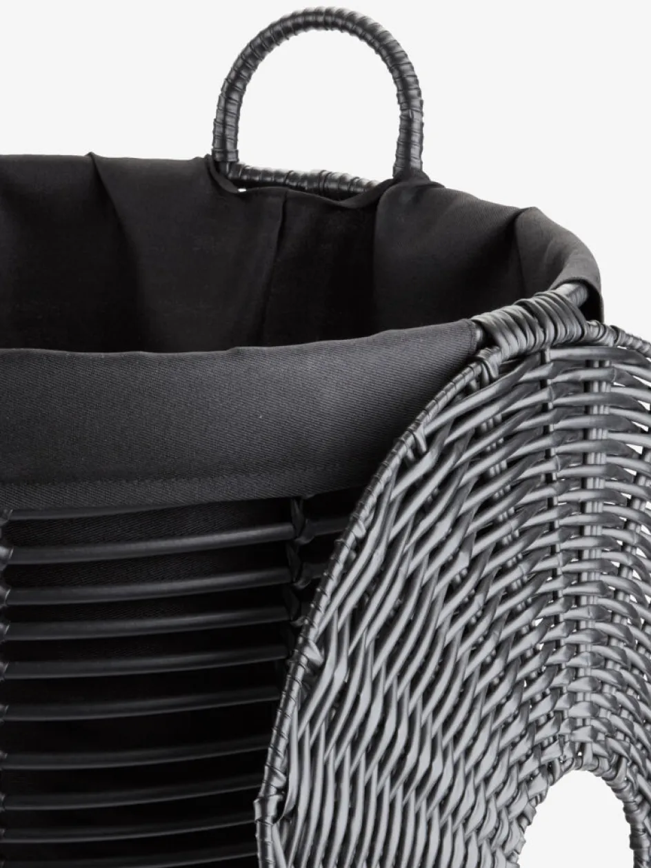 Panier à linge au design tressé noir avec une doublure amovible assortie. Un couvercle pratique dissimule le linge et deux poignées facilitent son transport. Ø40 x H56 cm