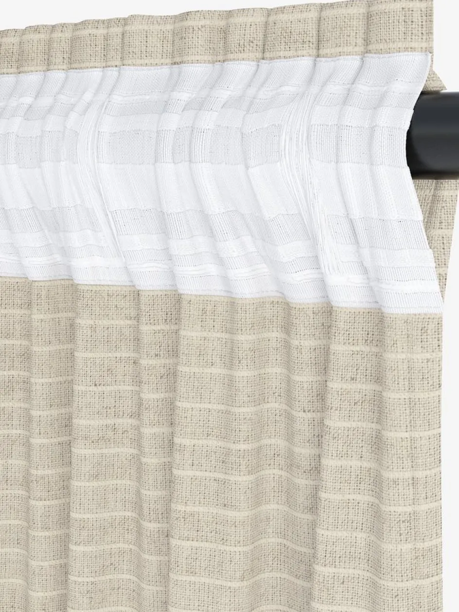 | En-tête de rideau | Bande de renfort et crochets, Pattes cachées, Tête coulissée |