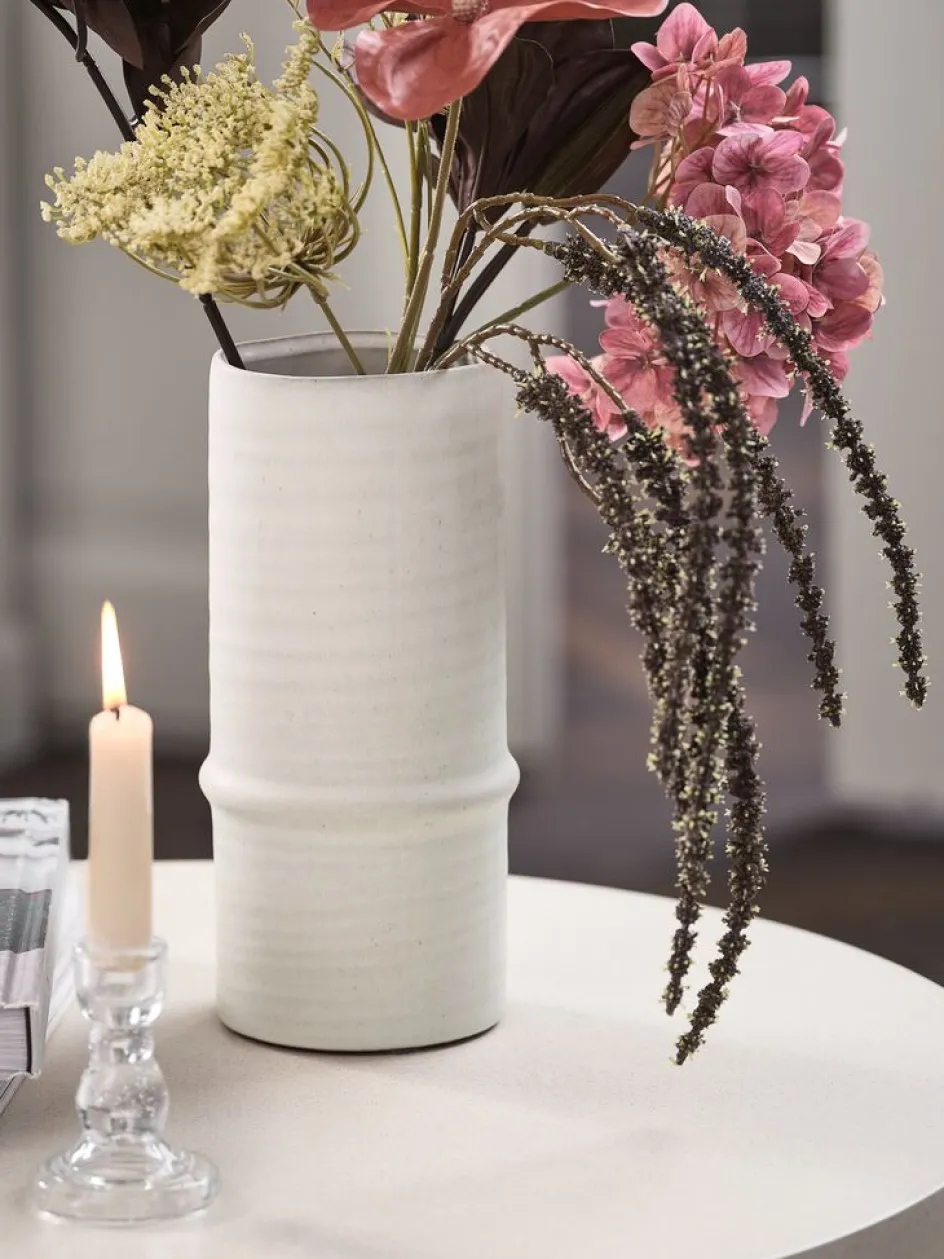 Vase en faïence blanche au design simple, idéal pour des fleurs fraîches ou comme pièce décorative. Ø12 x H25 cm