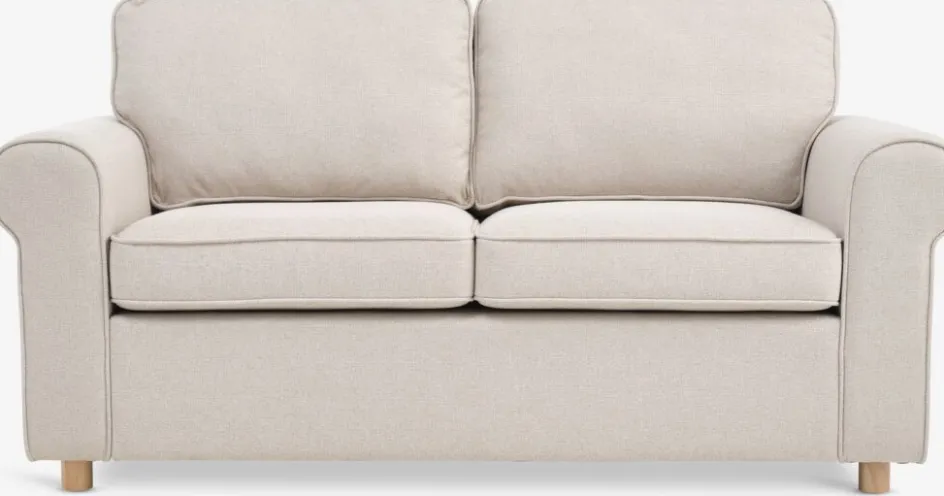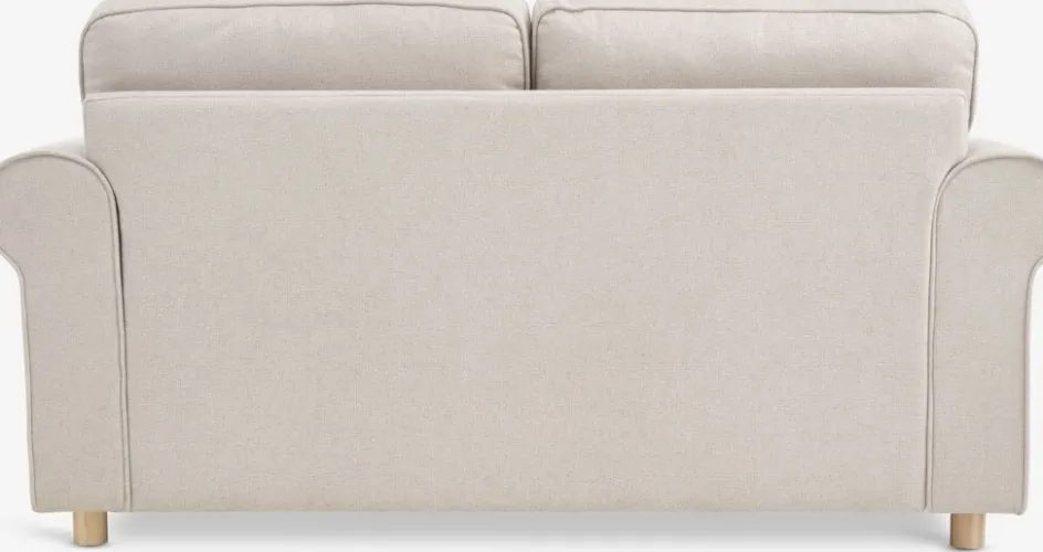 Canapé 2 places en tissu. Coussin d’assise avec ressorts ensachés et garnissage en mousse. Coussin de dossier en mousse. Pieds en bois massif. l162 x H86 x P84 cm