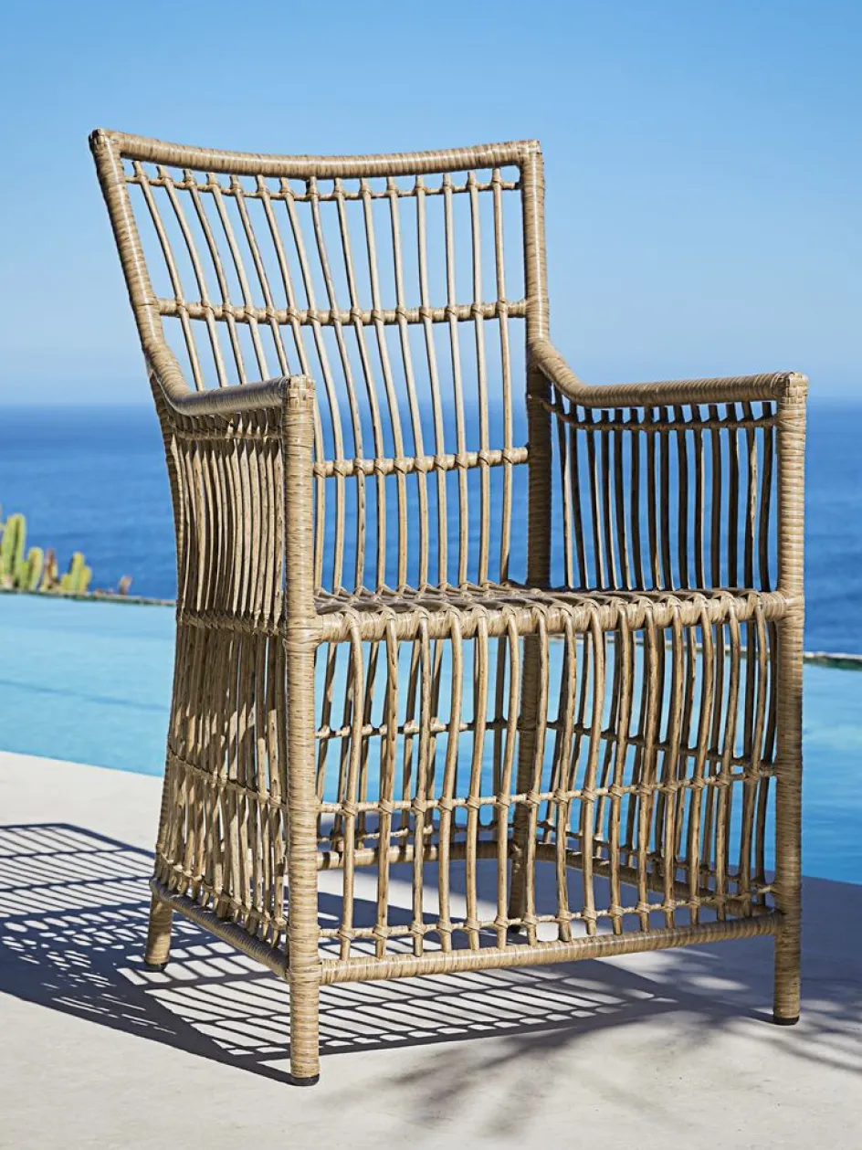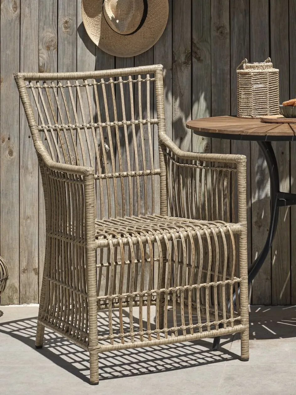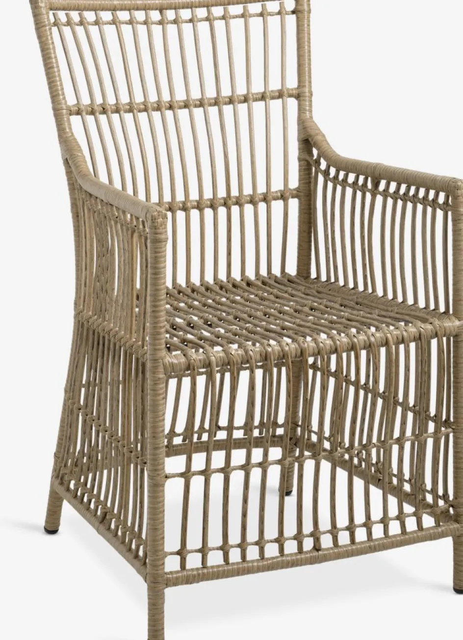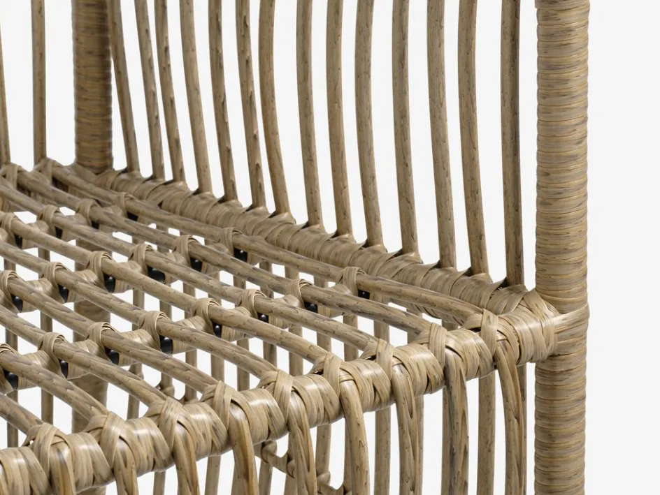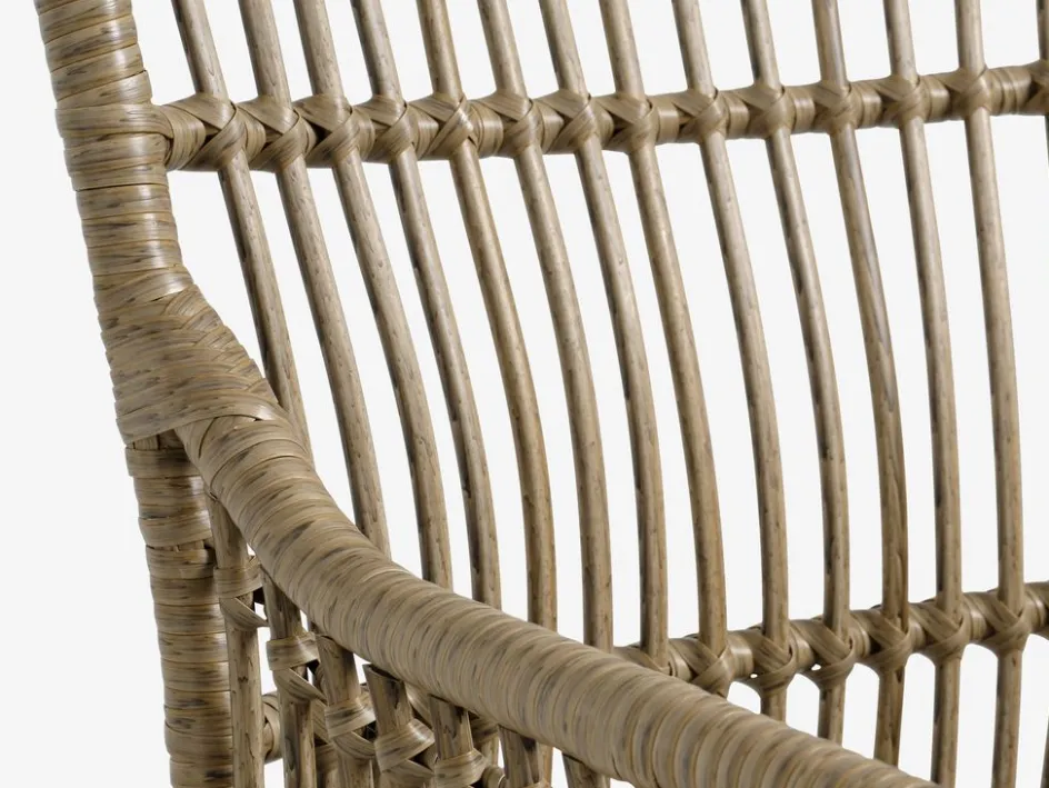 Chaise de jardin en polyrotin avec un cadre en acier peint par poudrage. Le polyrotin confère un aspect naturel d’osier, tout en étant résistant aux intempéries et sans entretien.