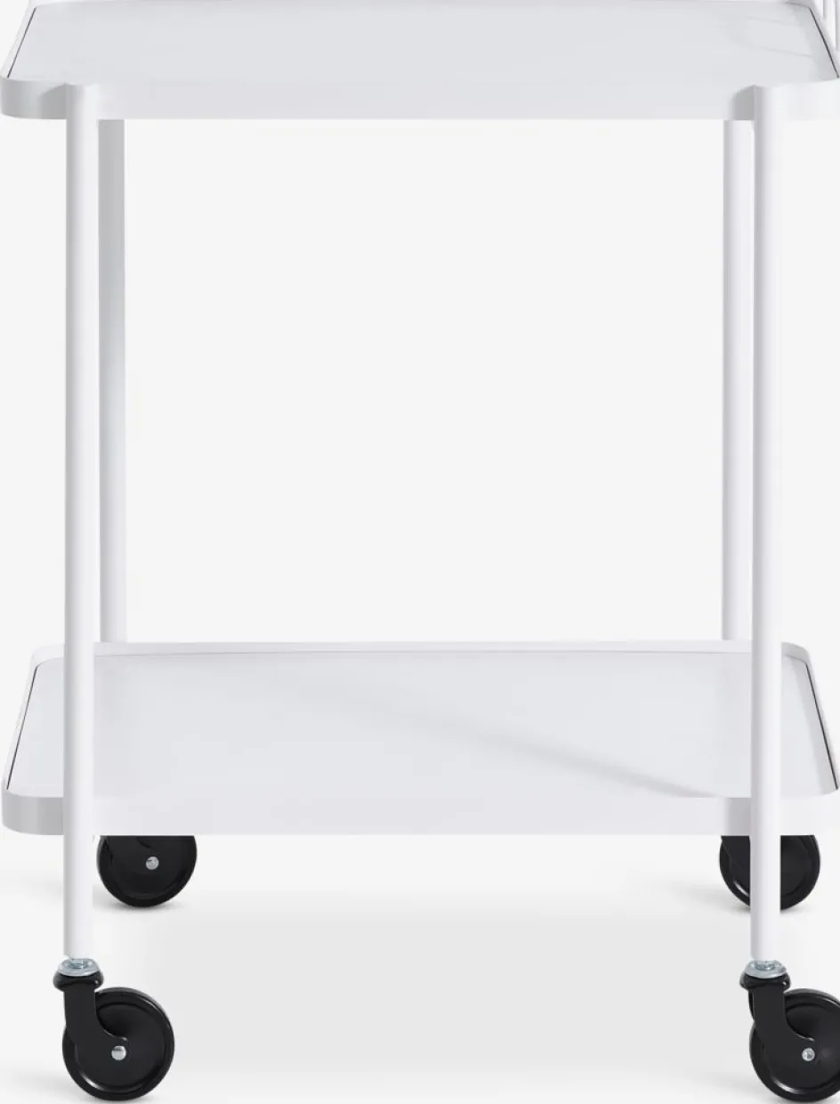 En acier. Étagère : MDF mélaminé. Roulettes : polypropylène. l56 x H70 x P41 cm
