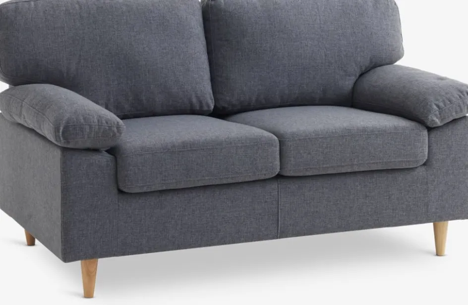 Structure : contreplaqué lamibois. Garnissage : 72 ressorts ensachés/m², mousse polyéther (25/20 kg/m³). Revêtement : polyester. Pieds : bois de caoutchouc massif. 2 places. l154 x H85 x P84 cm