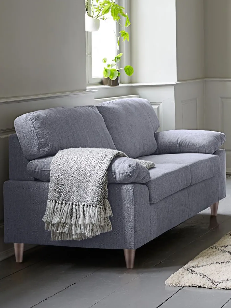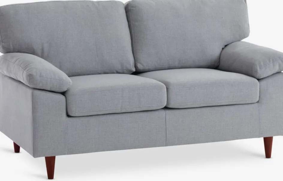 Canapé 2 places en tissu. Coussin d’assise avec ressorts ensachés et rembourrage en mousse. Coussin de dossier en mousse. Pieds en bois massif. l154 x H85 x P84 cm