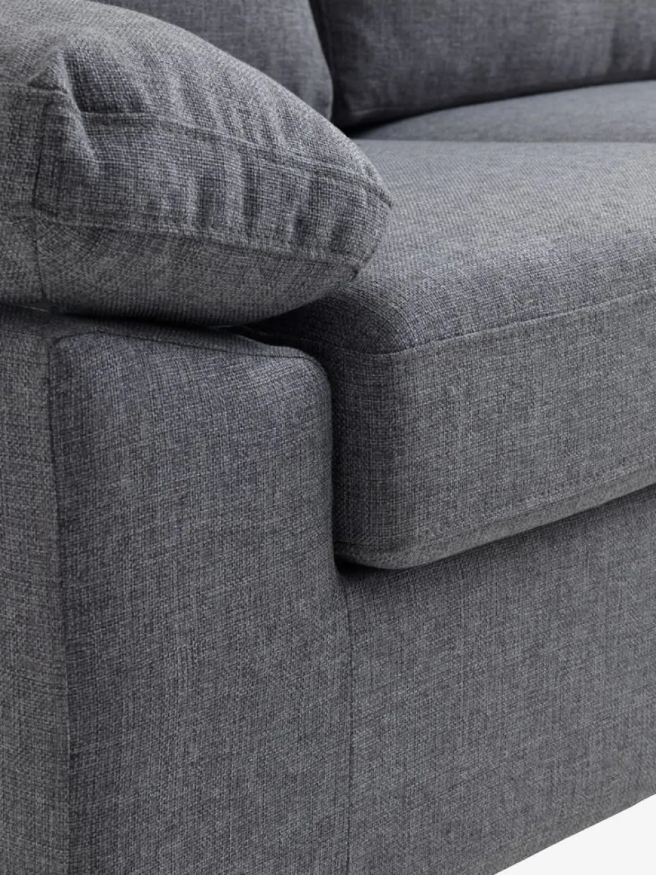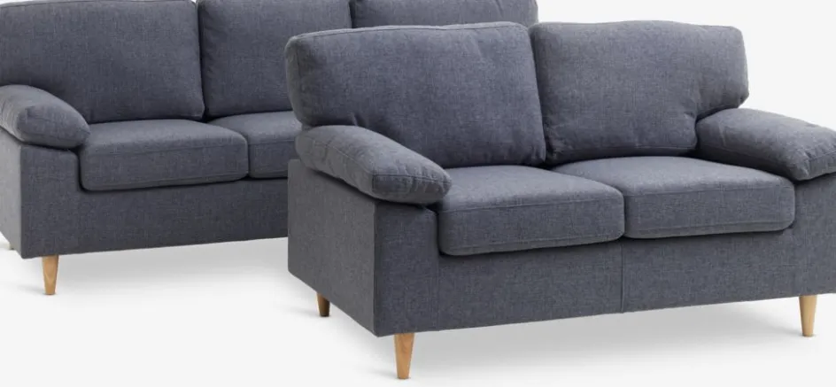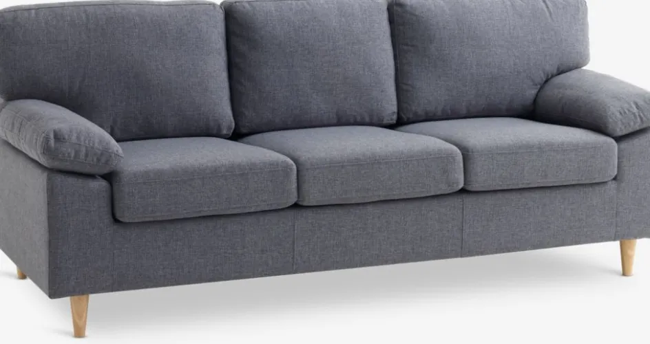 Structure : contreplaqué lamibois. Garnissage : 108 ressorts ensachés/m², mousse polyéther (25/20 kg/m³). Revêtement : polyester. Pieds : bois de caoutchouc massif. 3 places. l210 x H85 x P84 cm