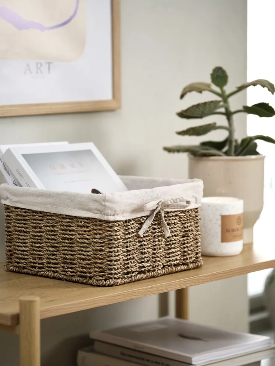 Panier au design tressé en herbier marin, soutenu par un cadre en acier. Convient pour organiser différents objets à la maison. l25 x L25 x H15 cm