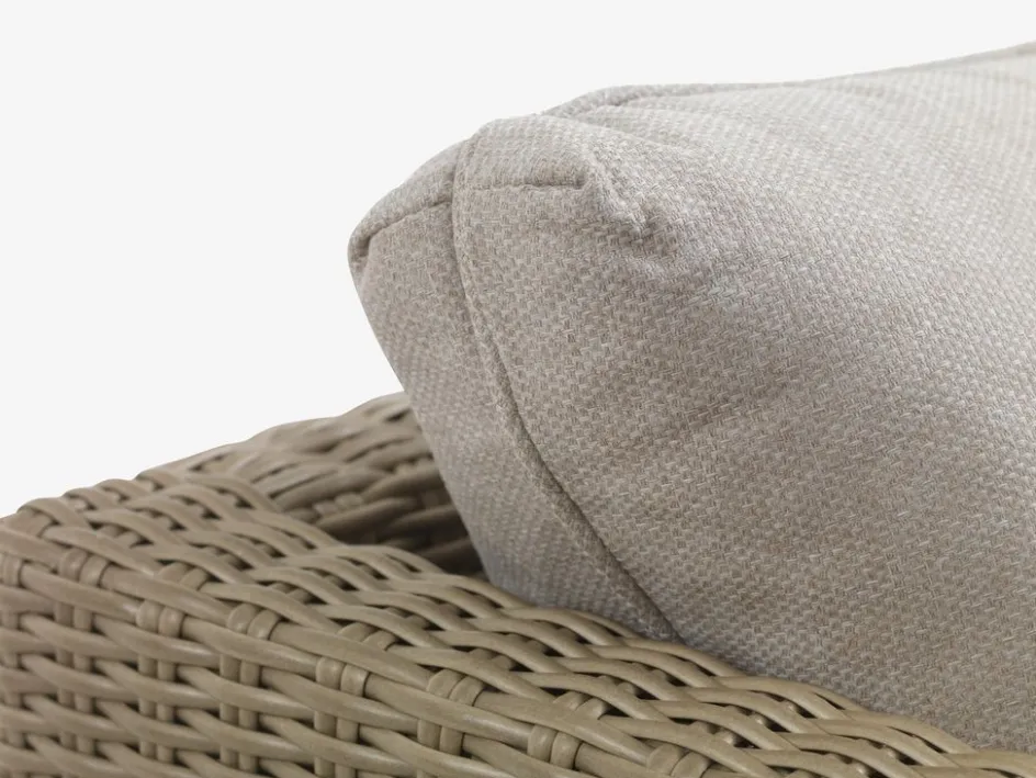 Les coussins d’assise et de dossier de qualité inclus vous offrent un confort optimal au quotidien. Les coussins sont dotés d’une housse durable qui les rend résistants à l’usure. Rangez les coussins à l’intérieur lorsqu’ils ne sont pas utilisés afin de les protéger des intempéries et de prolonger leur durée de vie.