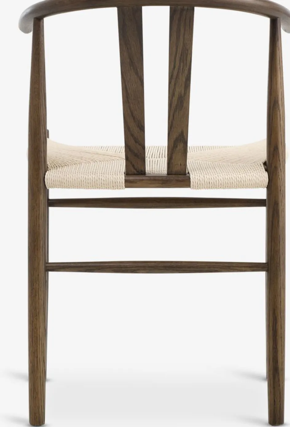 Chaise de salle à manger avec assise en corde de papier tressée. Cadre en chêne foncé massif avec dossier incurvé. Le bois est laqué pour une plus grande durabilité.