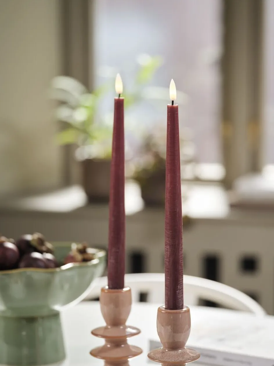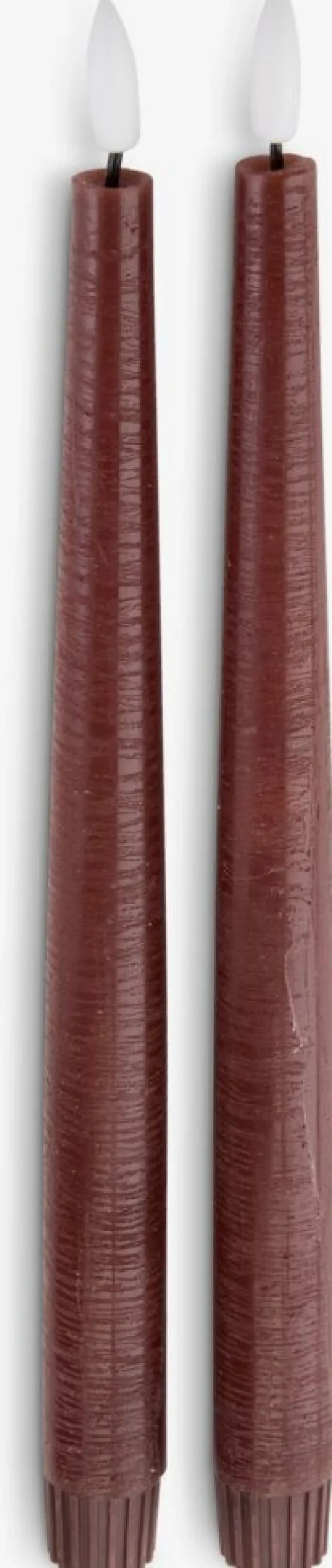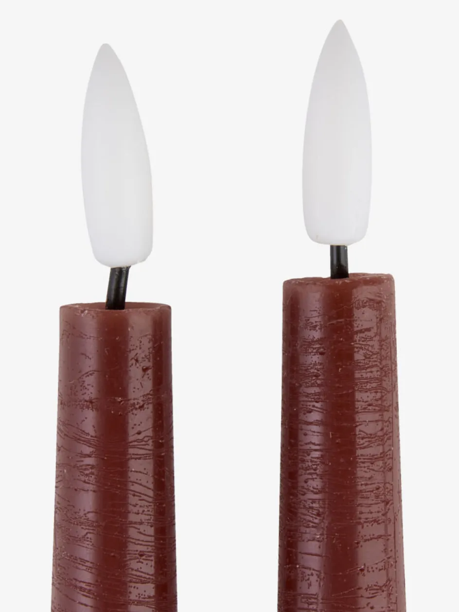 Bougie chandelle LED coloris aubergine foncé. Fabriquée en cire de bougie, elle offre l’ambiance authentique de la lumière d’une bougie sans flamme ni coulure. Un minuteur intégré pratique allume la lumière pendant 6 heures et l’éteint pendant 18. Lot de 2. Nécessite 2 piles AAA, vendues séparément. Ø2 x H29 cm