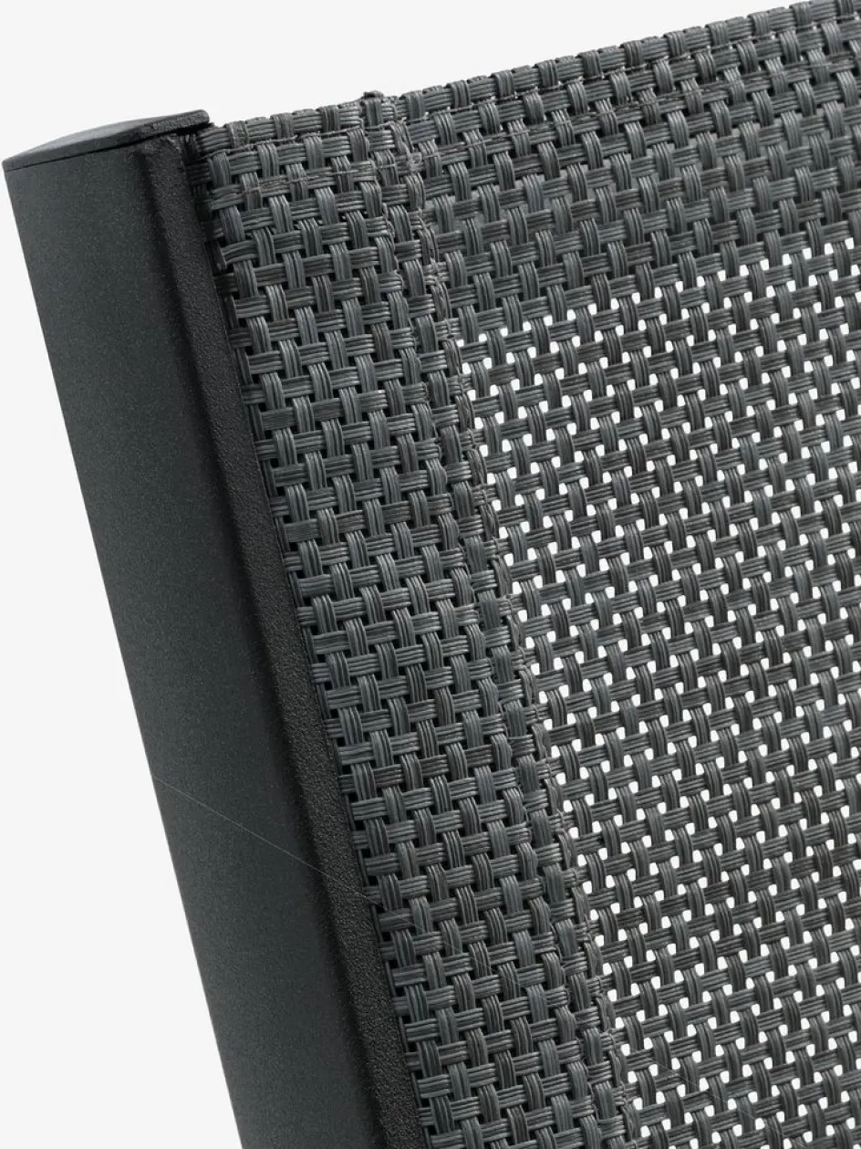 Ensemble de meubles de jardin 4 personnes. Table : aluminium et bois composite DURAWOOD®. Le DURAWOOD® est un matériau composite durable est fabriqué à partir de fibres de bois FSC® et de plastique. l100 x L214 x H74 cm. Chaise : aluminium et textilène. Empilable.