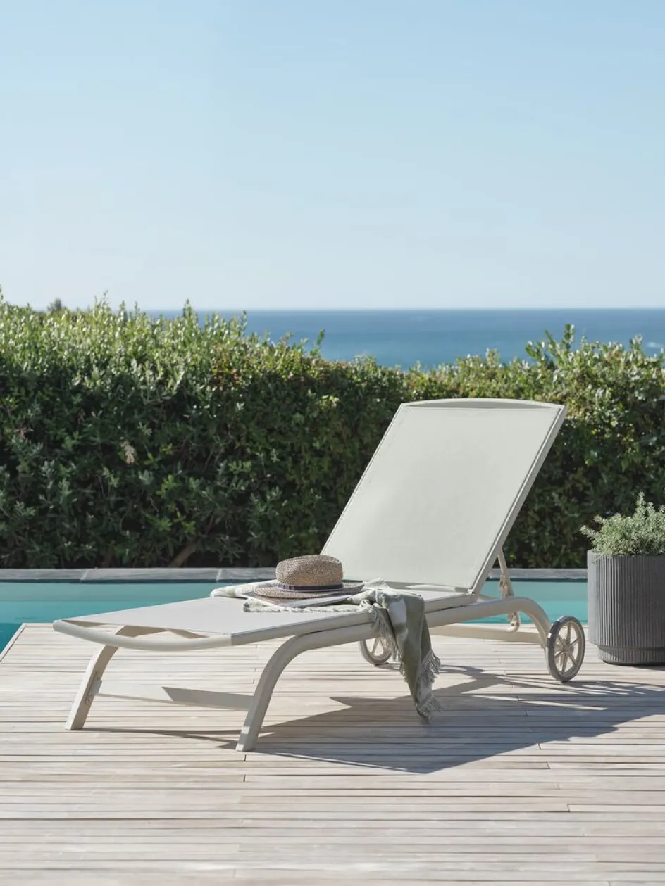 Bain de soleil en aluminium et textilène. l76 x L202 x H102 cm