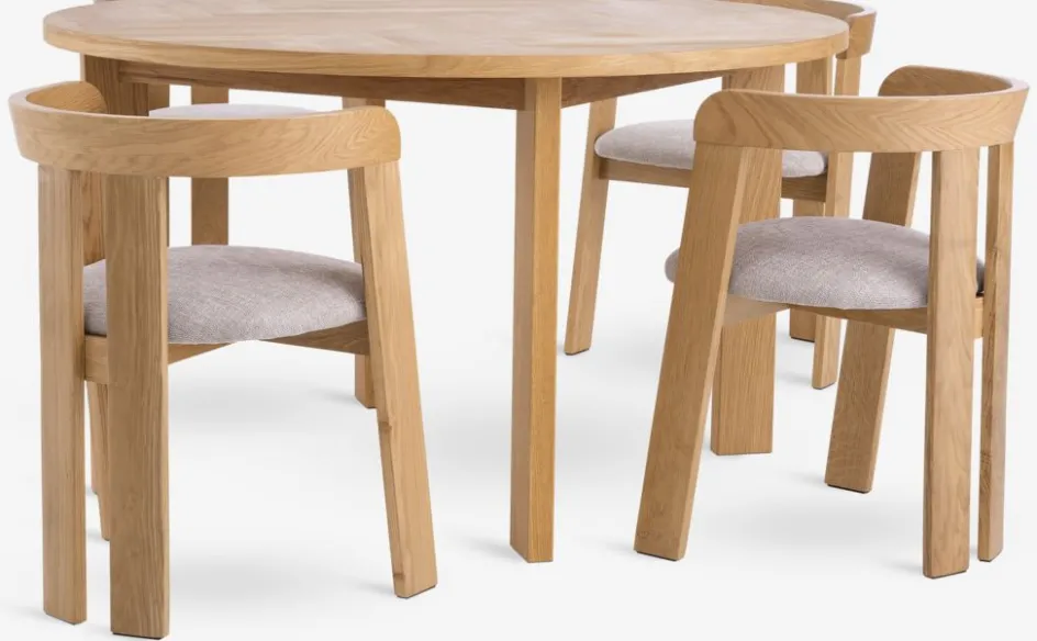 HARESKOV + BOVRUPHARESKOV Ø129 table coloris chêne naturel + 4 BOVRUP chaises-JYSK Hot