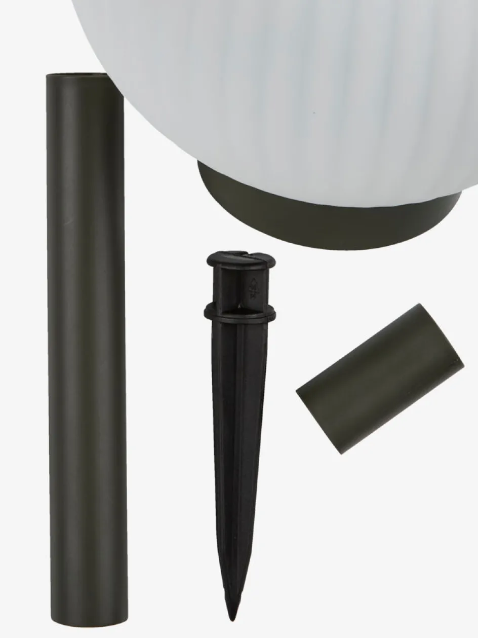 Lampe solaire au design blanc en forme de globe qui projette une lumière ambiante douce. Comme elle est alimentée à l’énergie solaire, elle est facile à placer n’importe où dans le jardin à l’aide d’un piquet de sol. La lampe fournit jusqu’à 6 heures de lumière après la tombée de la nuit et sa hauteur est réglable. Ø18 x H33/46 cm