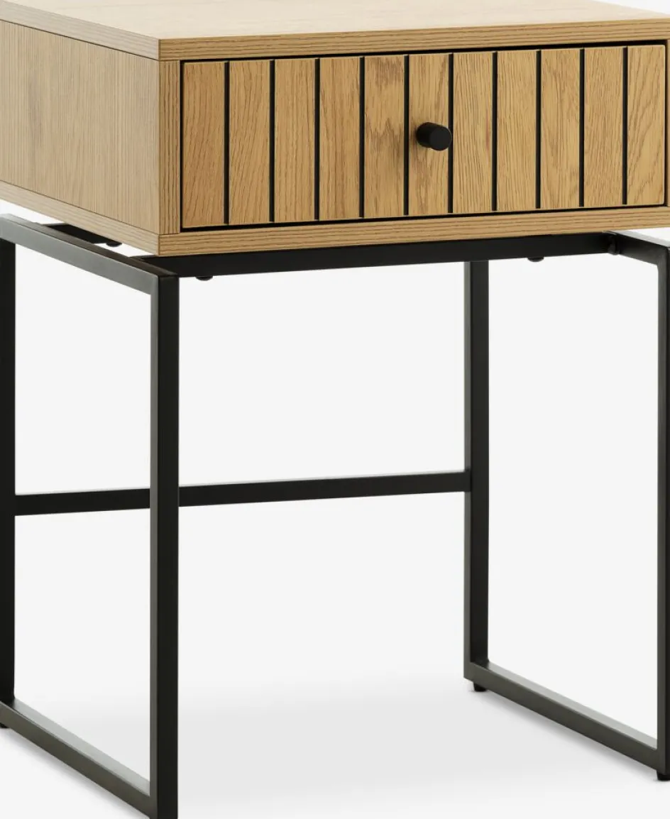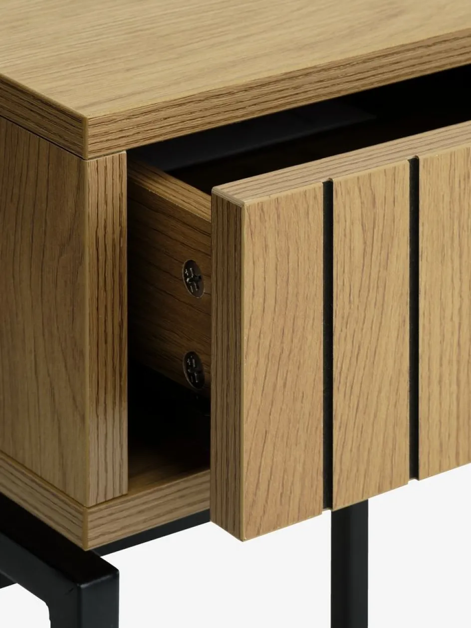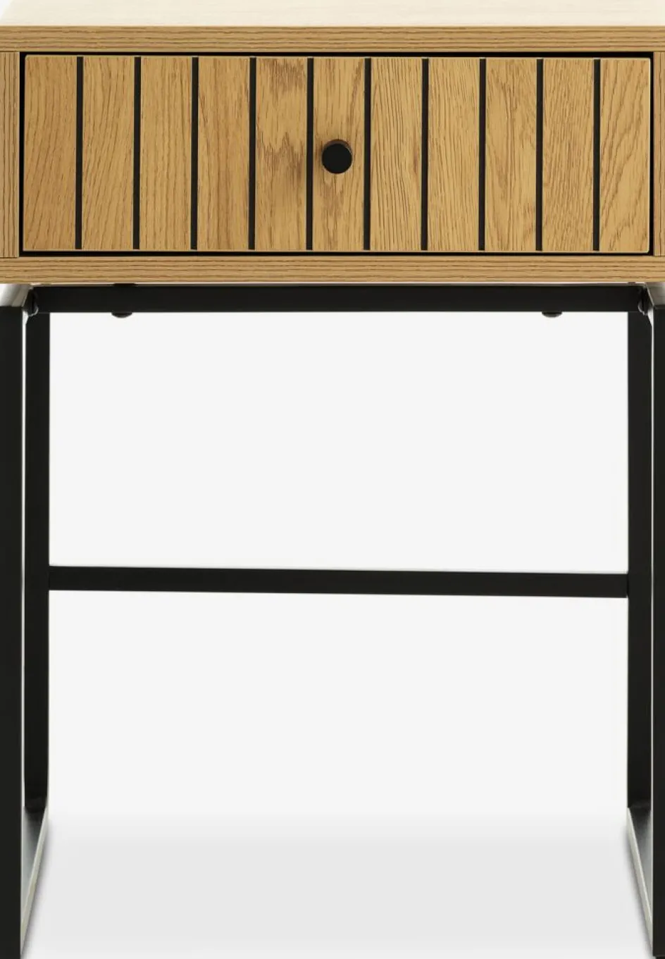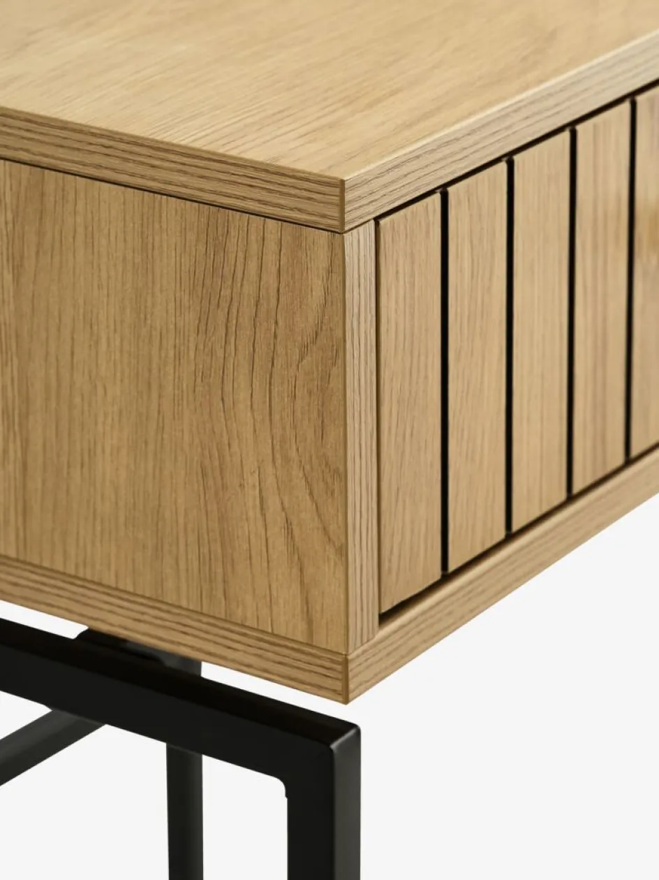 Placage décoratif et acier. l40 x H55 x P38 cm