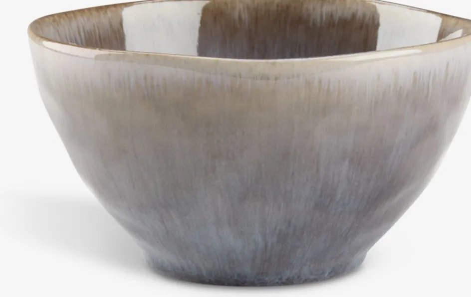 Bol en faïence avec des bords irréguliers dans une finition grise brillante. Résistant au lave-vaisselle. Ø14 x H8 cm