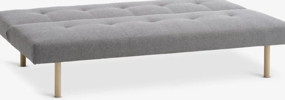 En lamibois, contreplaqué, polypropylène, acier, pin massif. Garnissage : mousse polyuréthane (10/45 kg/m³). Revêtement : polyester. Pieds : bois de caoutchouc massif, feutre, acier. 2 places. Couchage : 108×80 cm. l180 x H82 x P92 cm