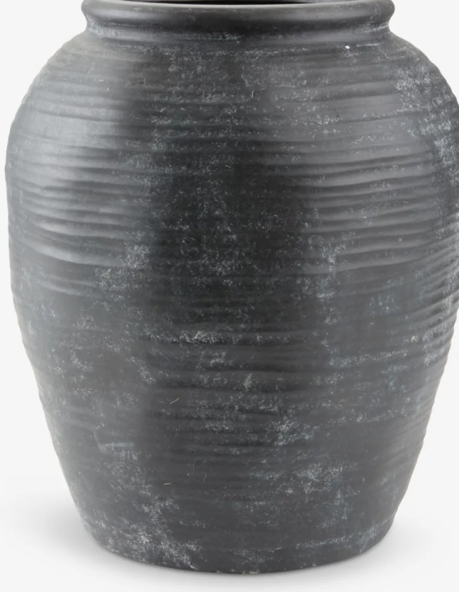 Vase noir en grès de forme large et d’apparence brute. Une pièce moderne pour votre décoration intérieure. Ø25 x H30 cm