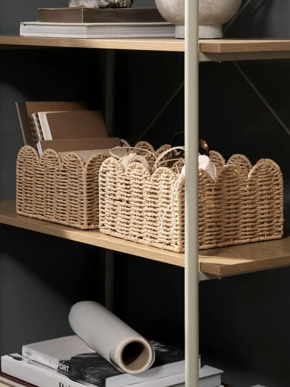 Panier aux bords élégants et festonnés qui allie style et fonctionnalité. Sa forme compacte et carrée convient à divers besoins de rangement. l24 x L24 x H14 cm