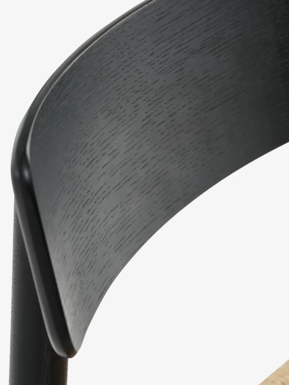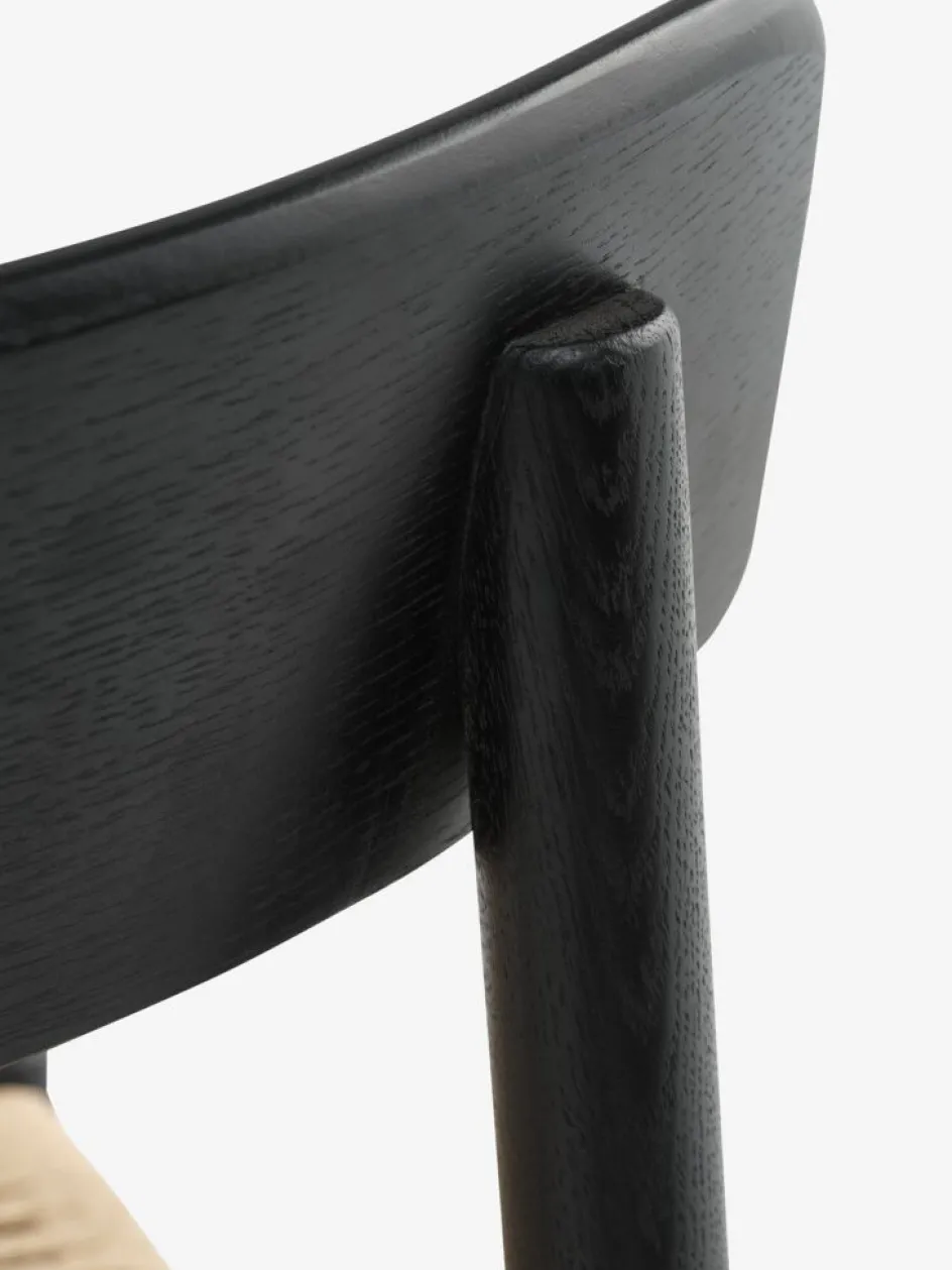 Chaise de salle à manger avec assise en corde de papier tressé et cadre en chêne massif et placage chêne.