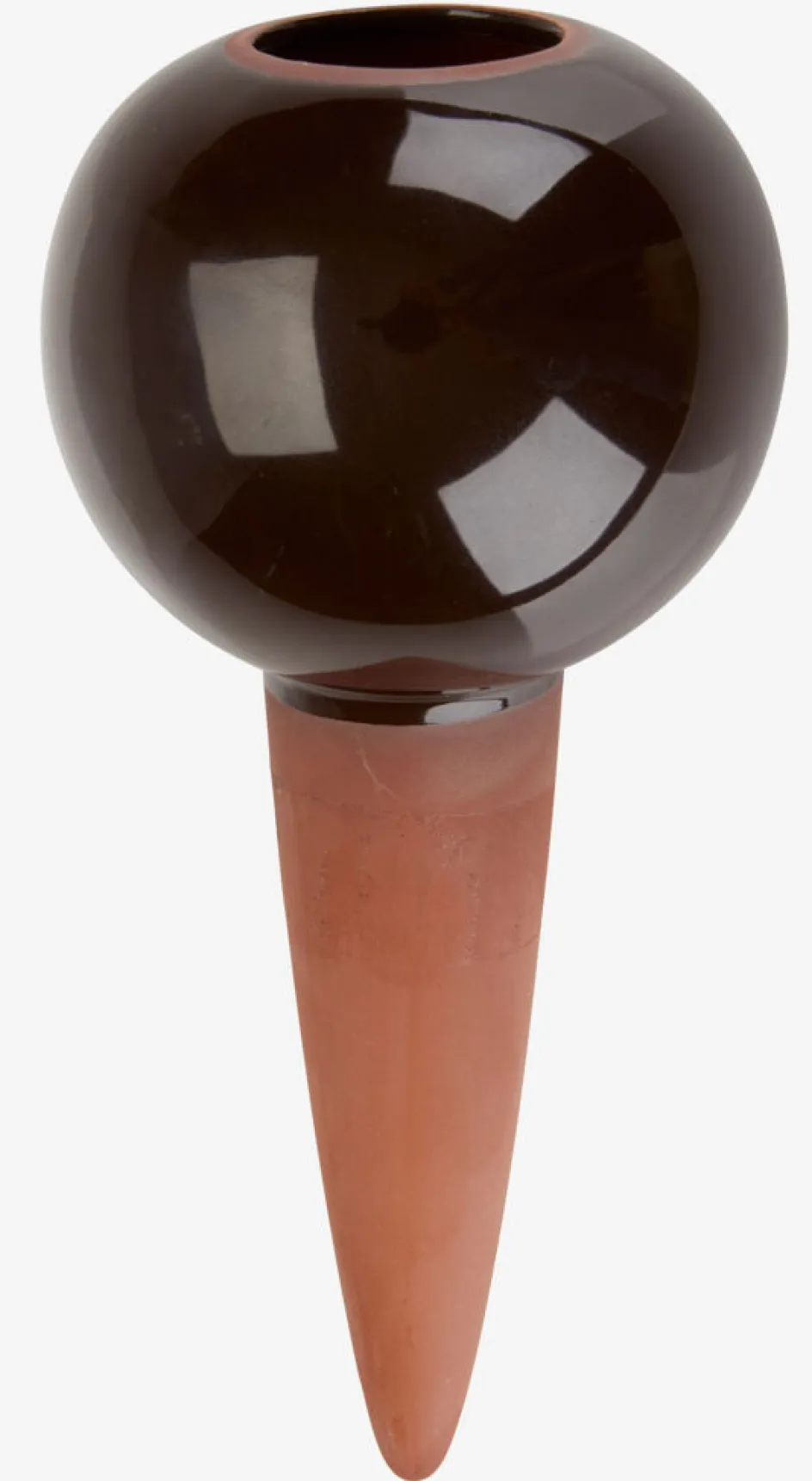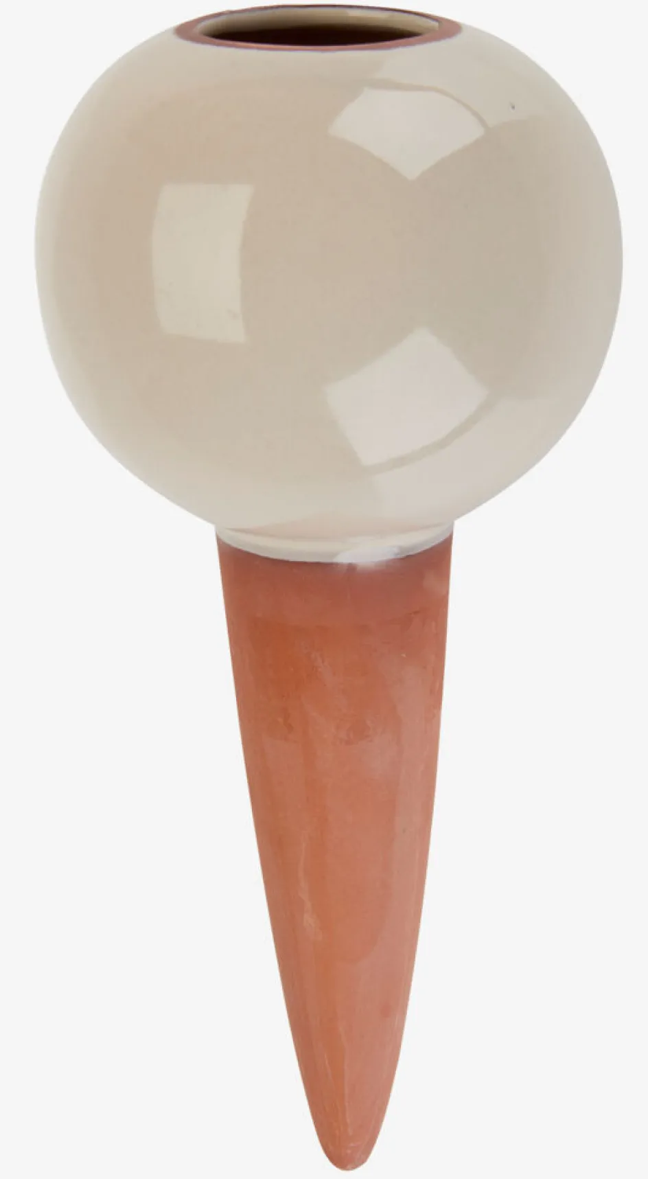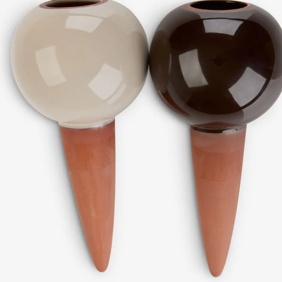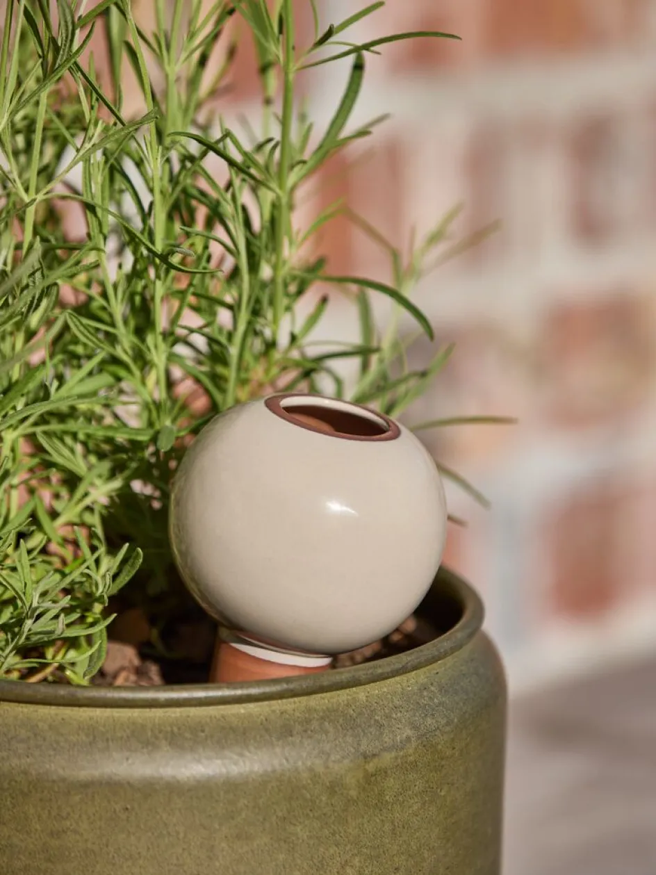 Dispositif d’auto-arrosage qui fournit aux plantes un apport régulier en eau. Le cône en terre cuite libère lentement l’eau dans la terre depuis le réservoir. Disponible en couleurs assorties et vendu à l’unité. Ø9 x H19 cm