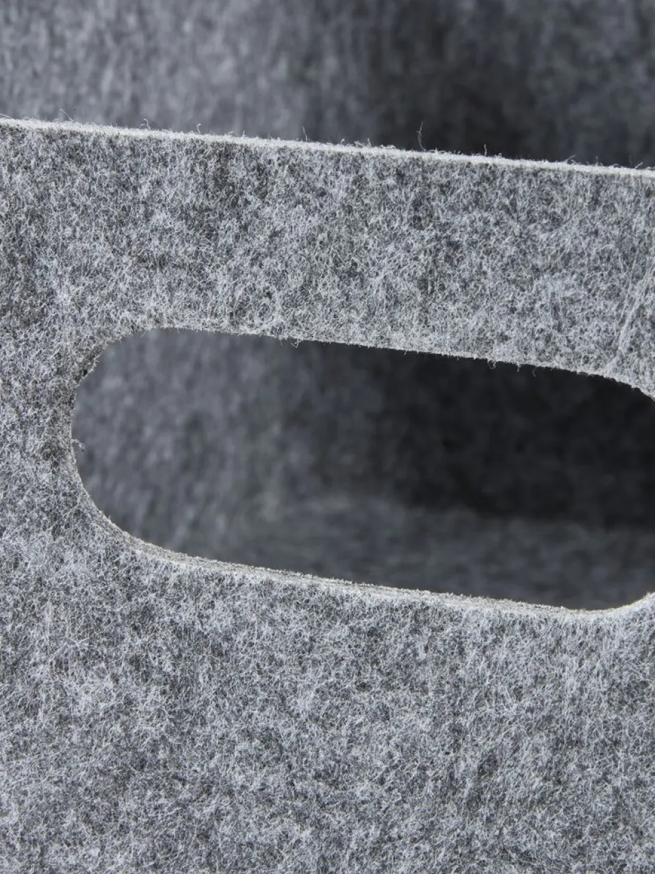 Panier en feutre gris avec un design simple et minimaliste. Convient pour une organisation et un rangement polyvalents à la maison. l25 x L33 x H14 cm
