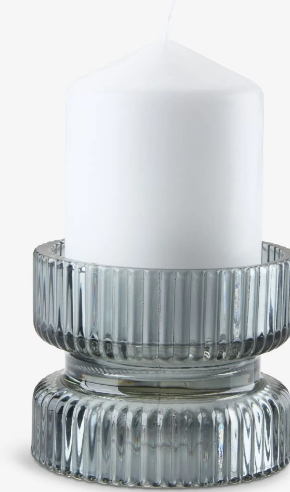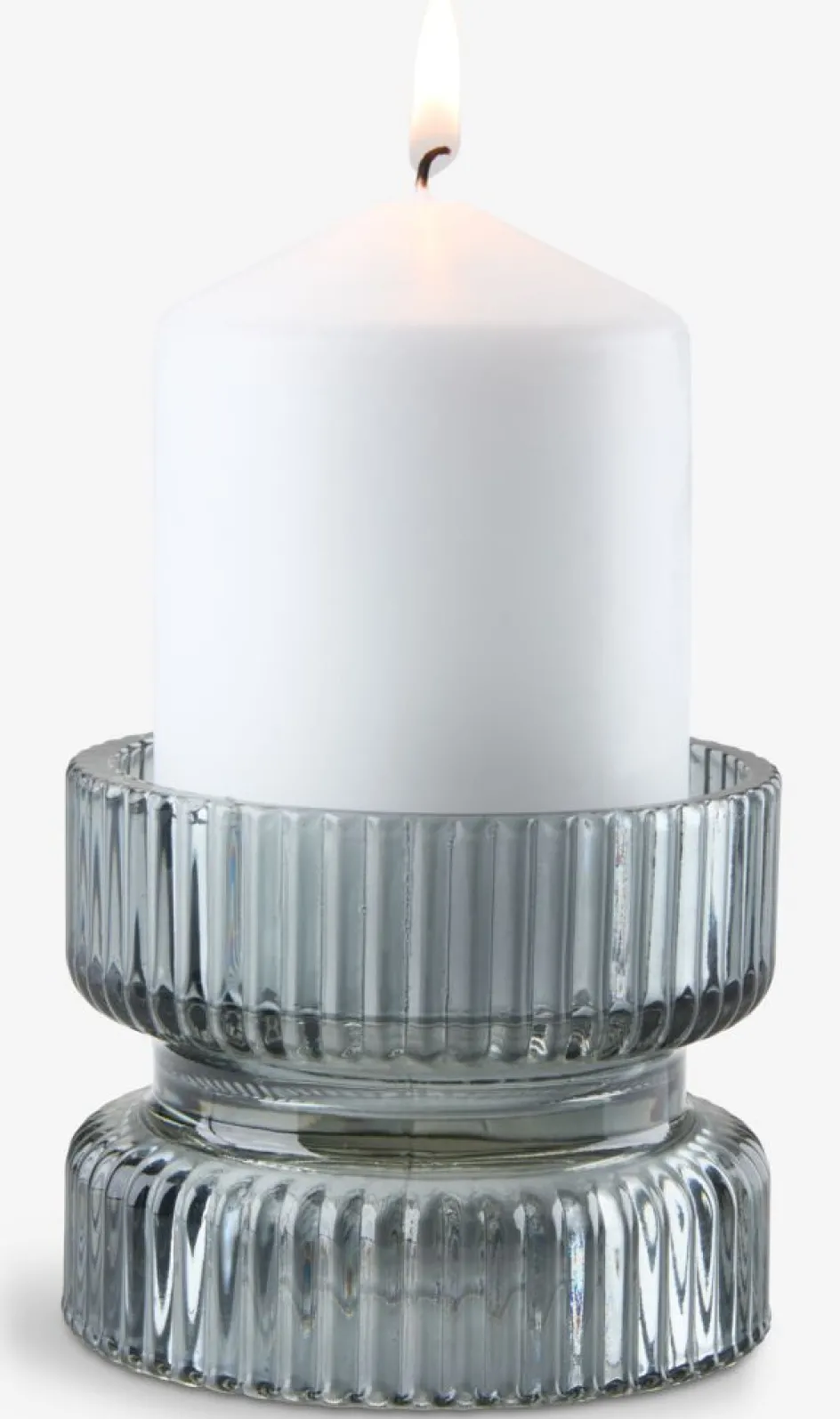 Bougeoir gris en verre, adapté aux bougies piliers. Une touche élégante pour votre intérieur. l9 x L9 x Ø9 x H7 cm