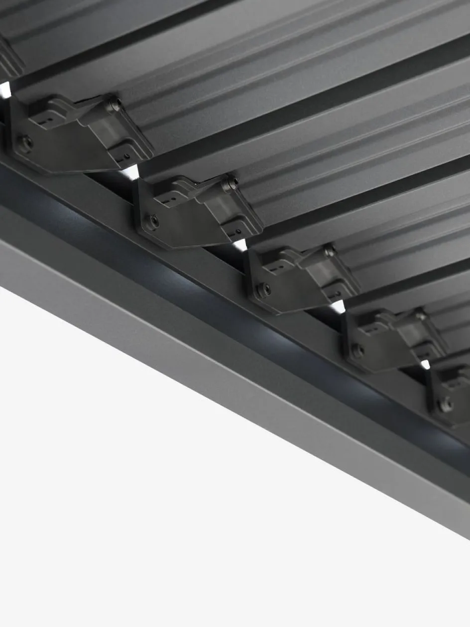 - Lamelles de toit réglables : réglez l’angle des lamelles pour obtenir le niveau d’ombre souhaité